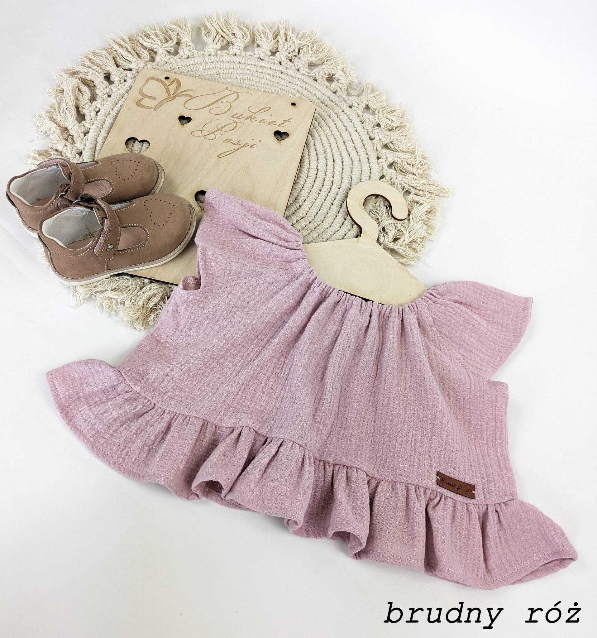 Bluzeczka z muślinu falbanki/rękawki brudny róż
