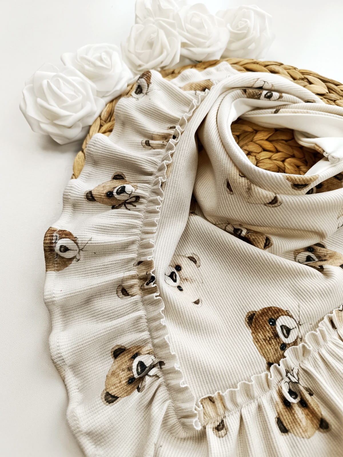 Chustka podwójna misie na beżu prążek
