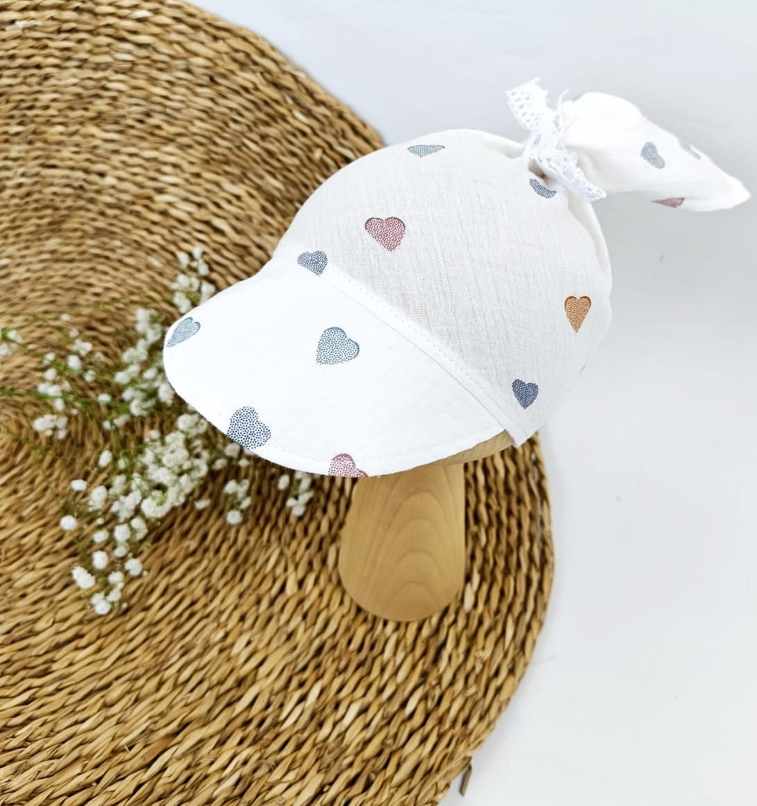 Chustka z daszkiem muślin Serca; wiązanie: koronka