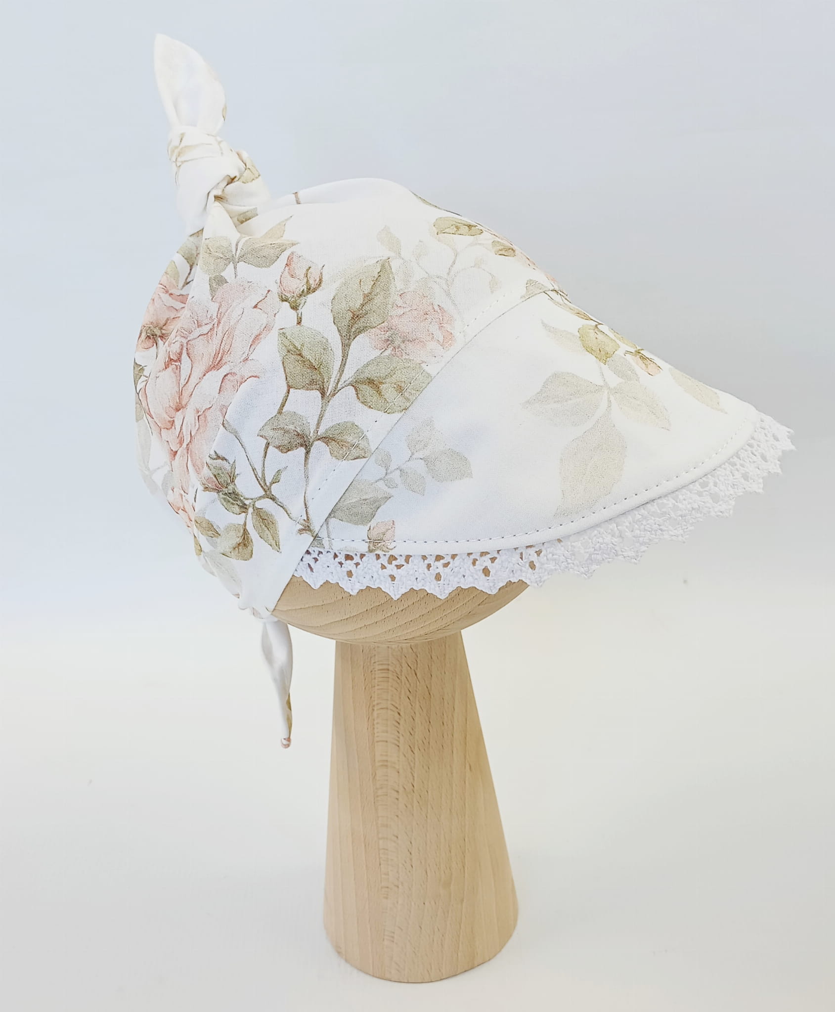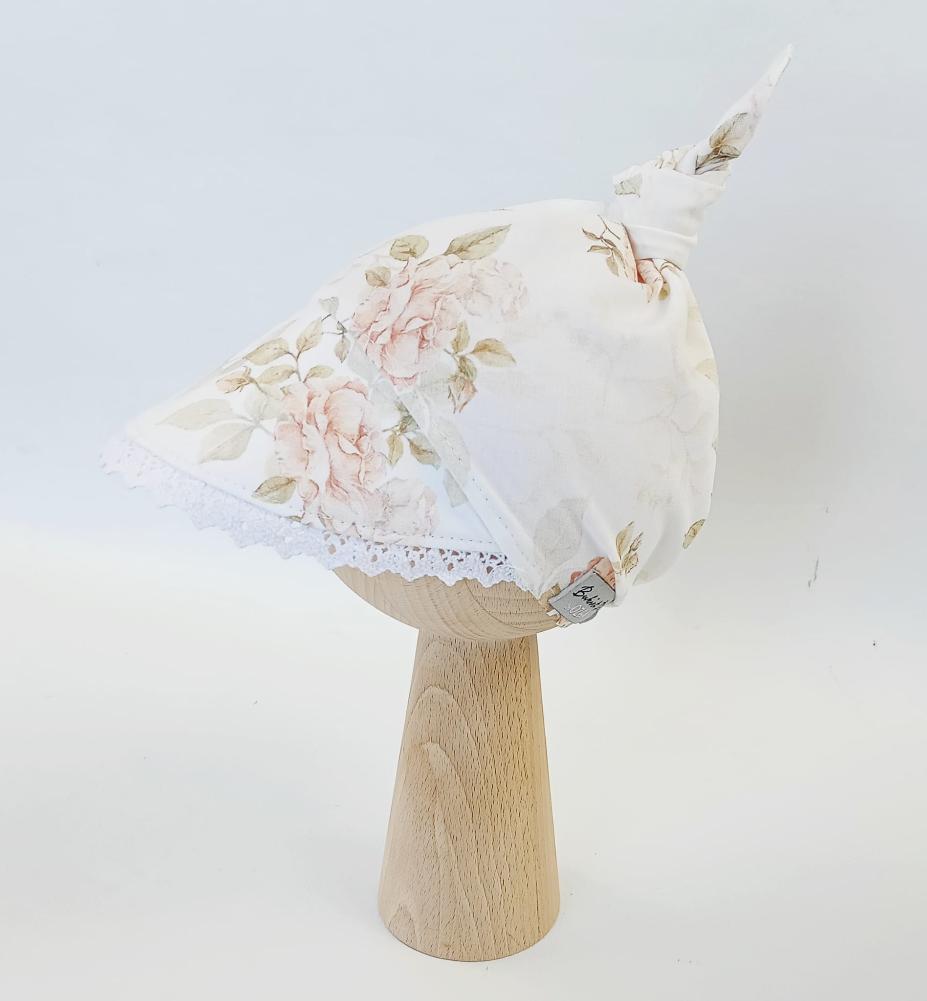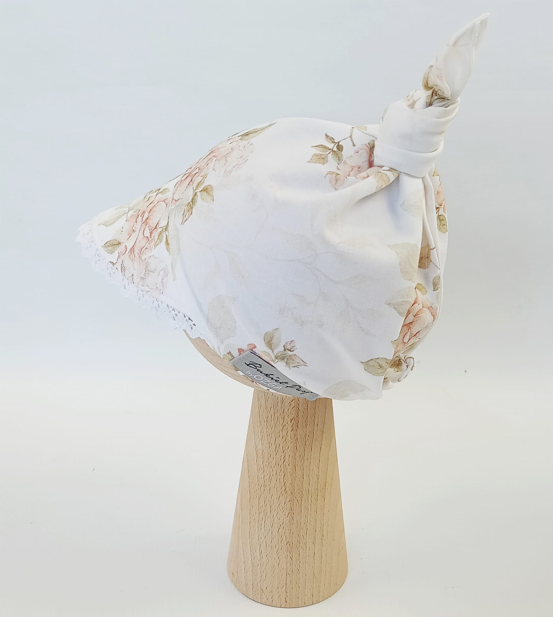Chustka z daszkiem z koronką vintage roses; supełek