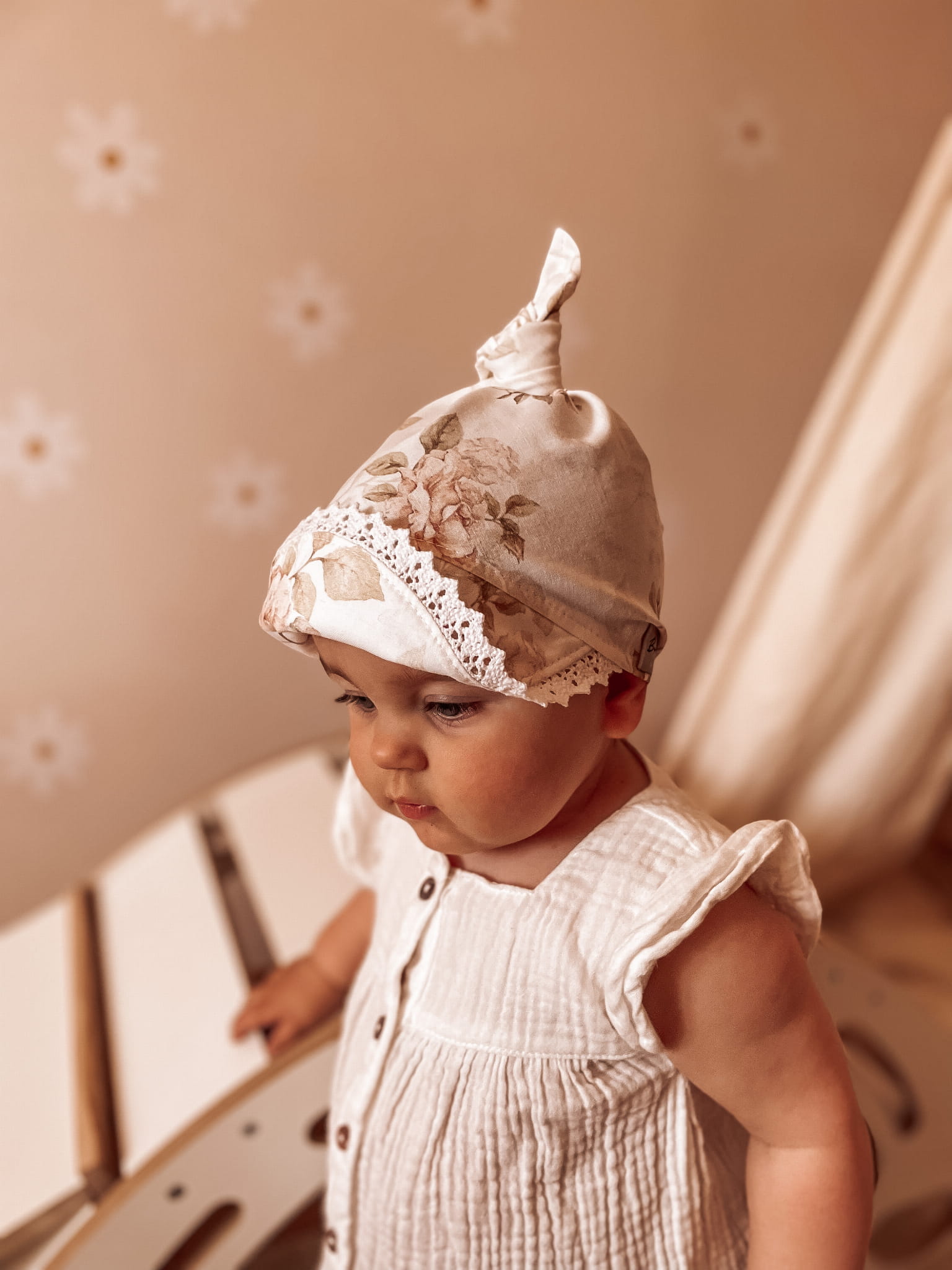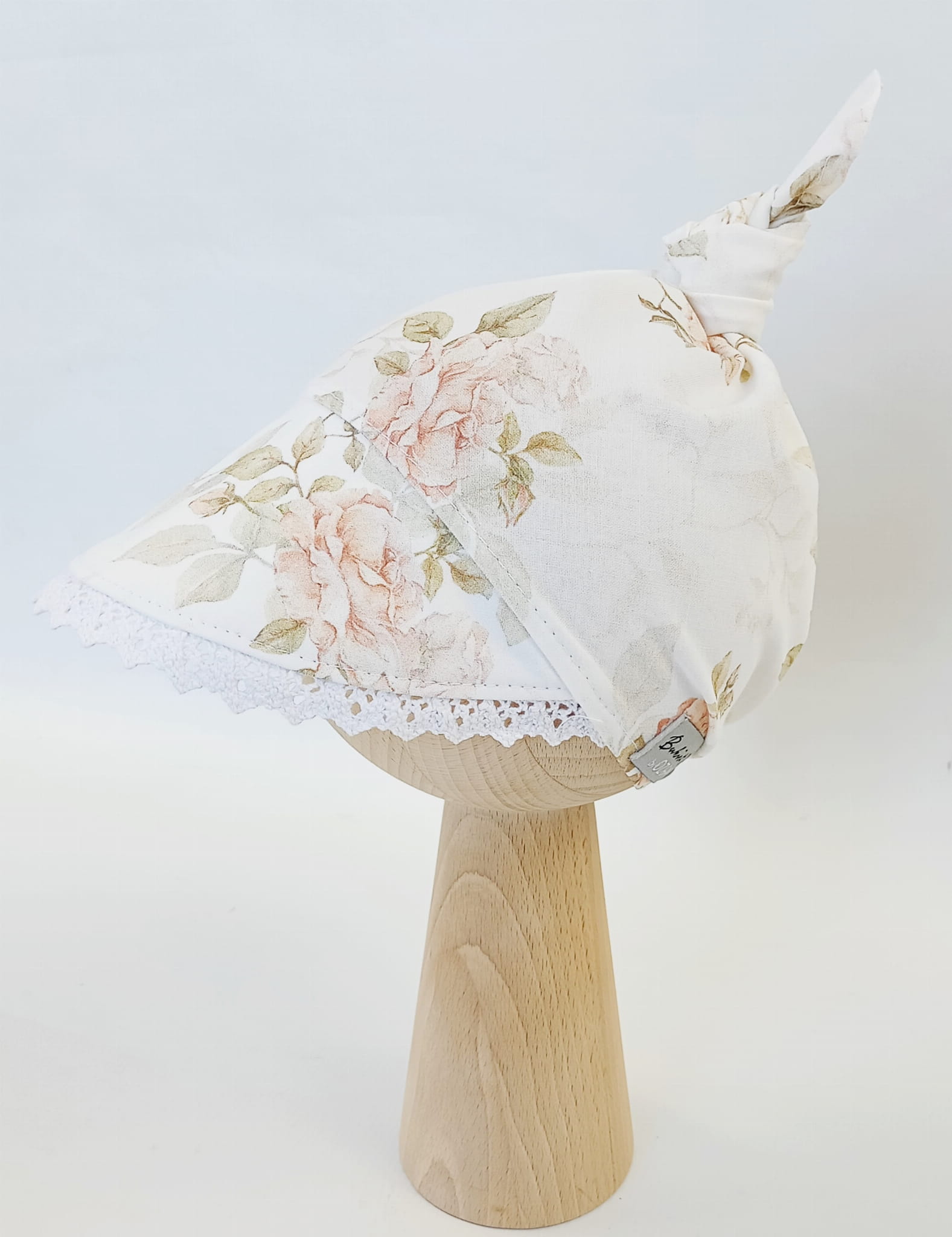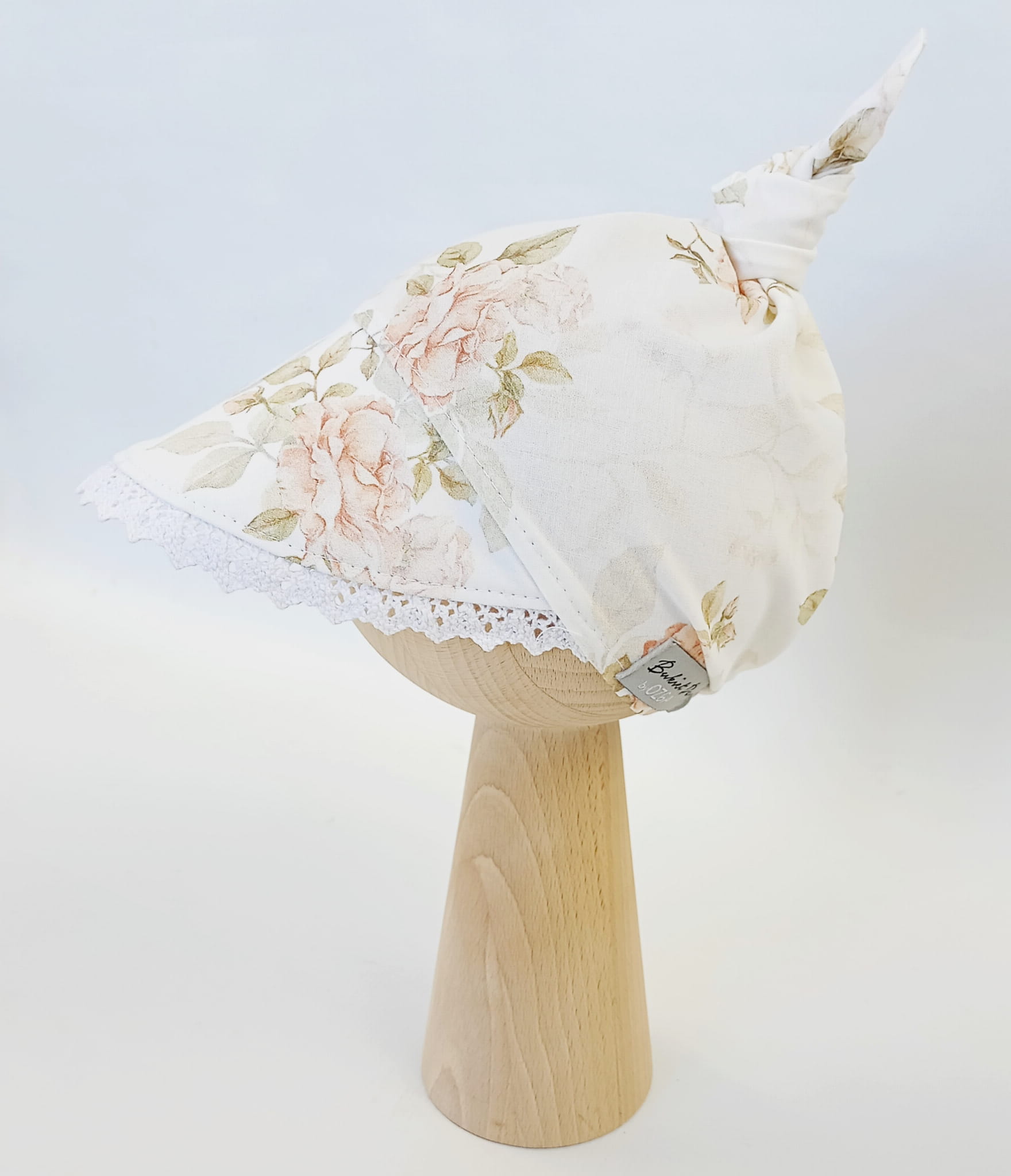 Chustka z daszkiem z koronką vintage roses; supełek