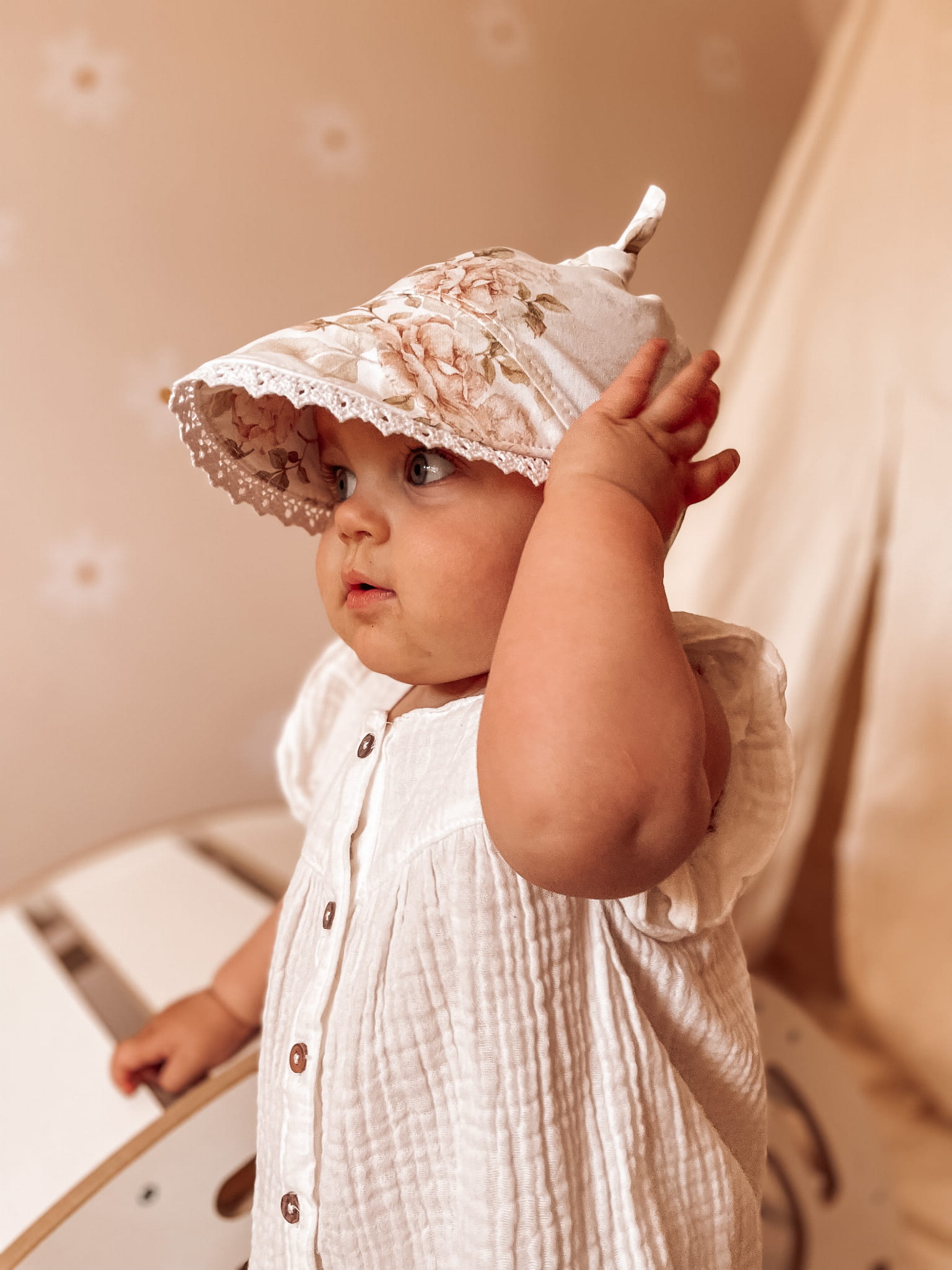 Idealne na lato chusteczki z daszkiem dla dzieci. Chronią przed słońcem i wiatrem.