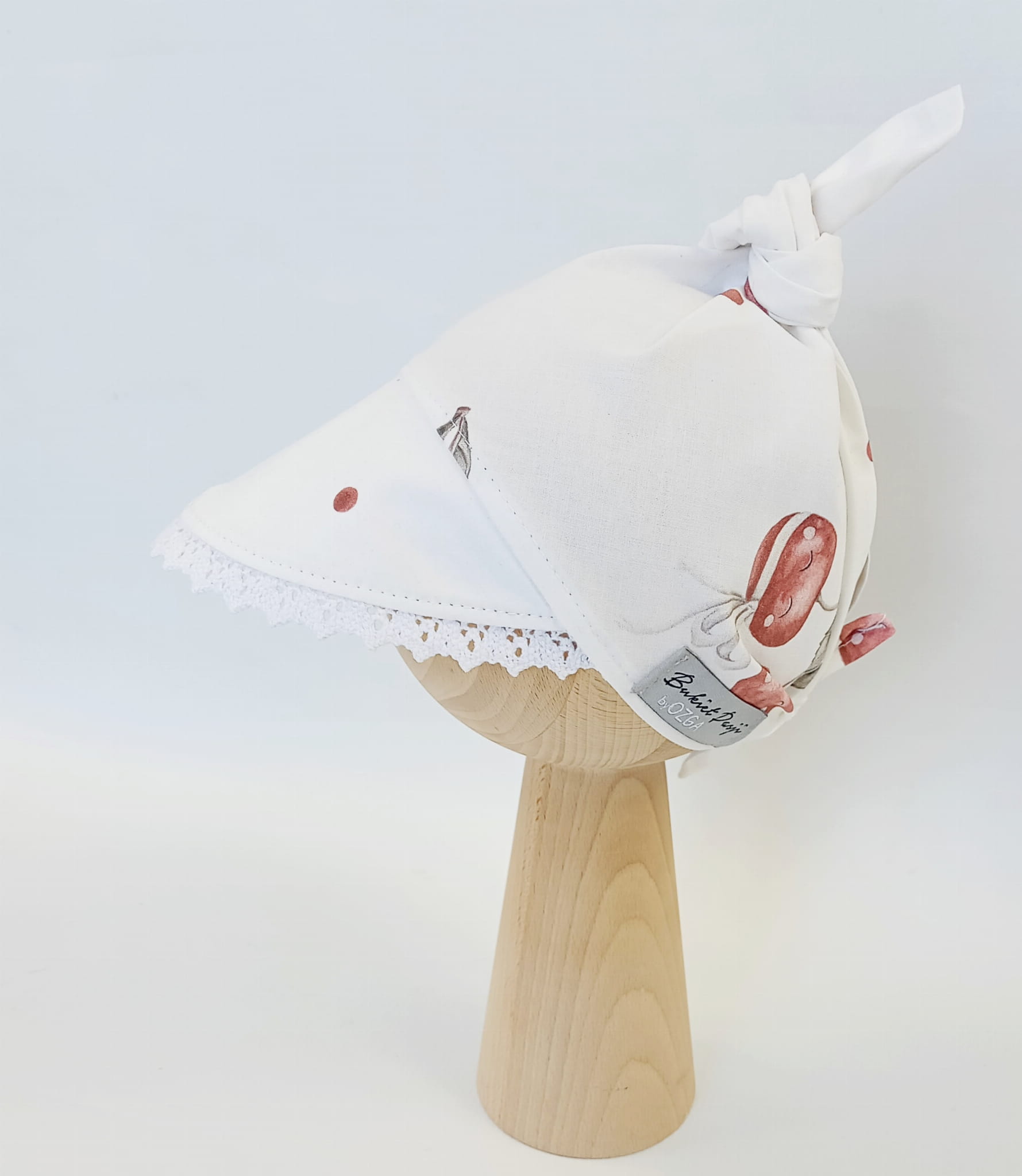 Chustka z daszkiem z koronką wisienki; supełek