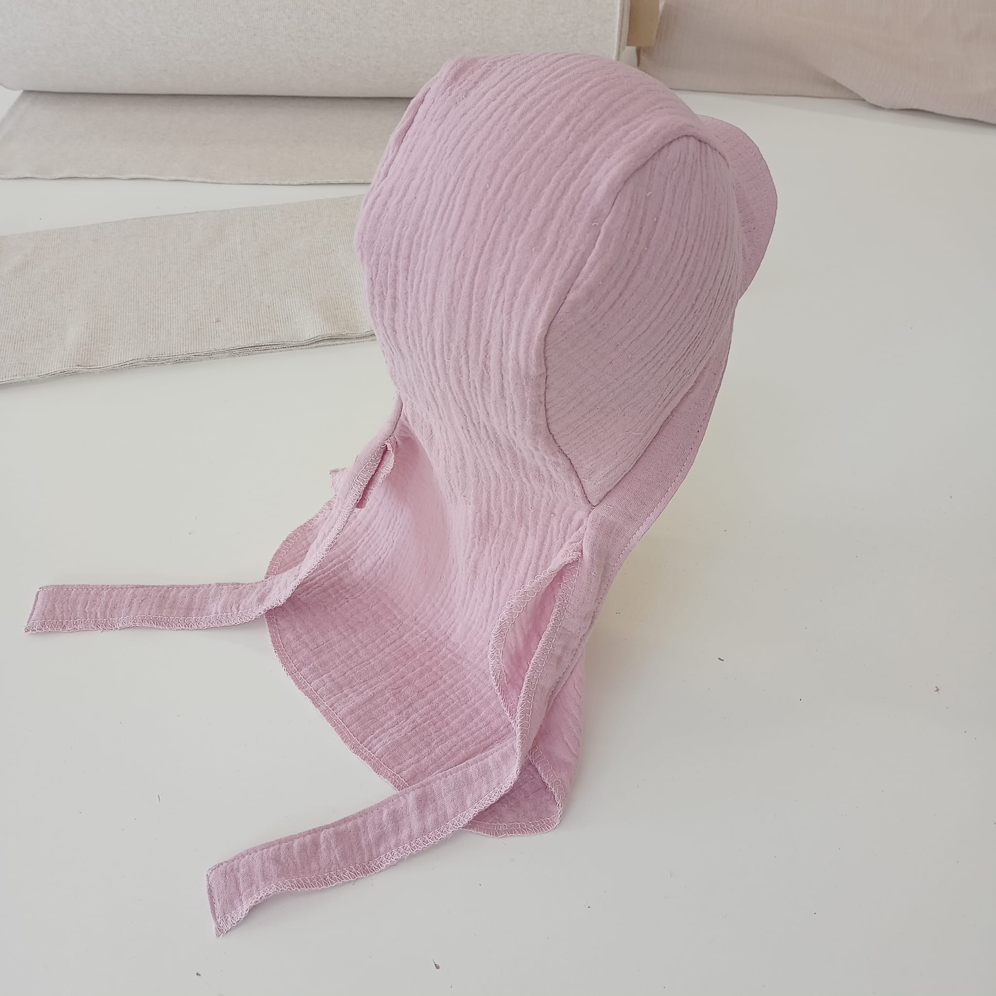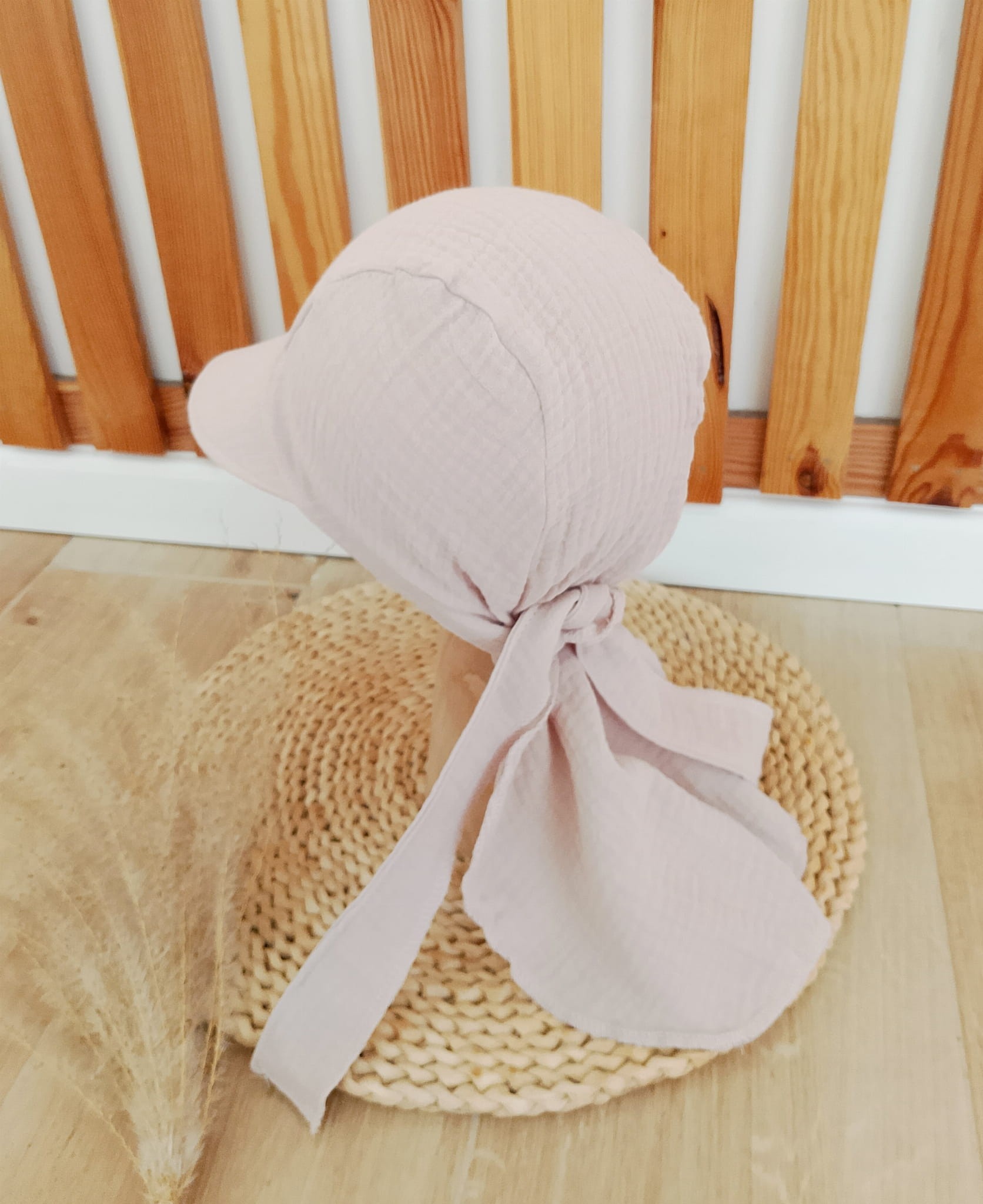 Chustka/czapka z daszkiem wiązana z muślinu z daszkiem na kark z muślinu j 1-5 lat dla dziewczynki