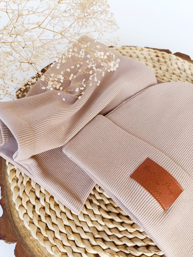 Materiał ściągacz bawełniany prążkowany: To wyjątkowo elastyczny i komfortowy materiał, który idealnie dopasowuje się do kształtu głowy i szyi dziecka. Bawełna zapewnia oddychalność, a prążkowana faktura dodaje estetyki i ciepła.