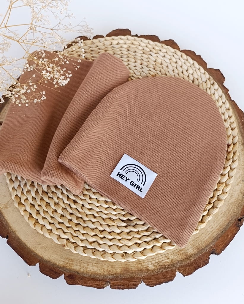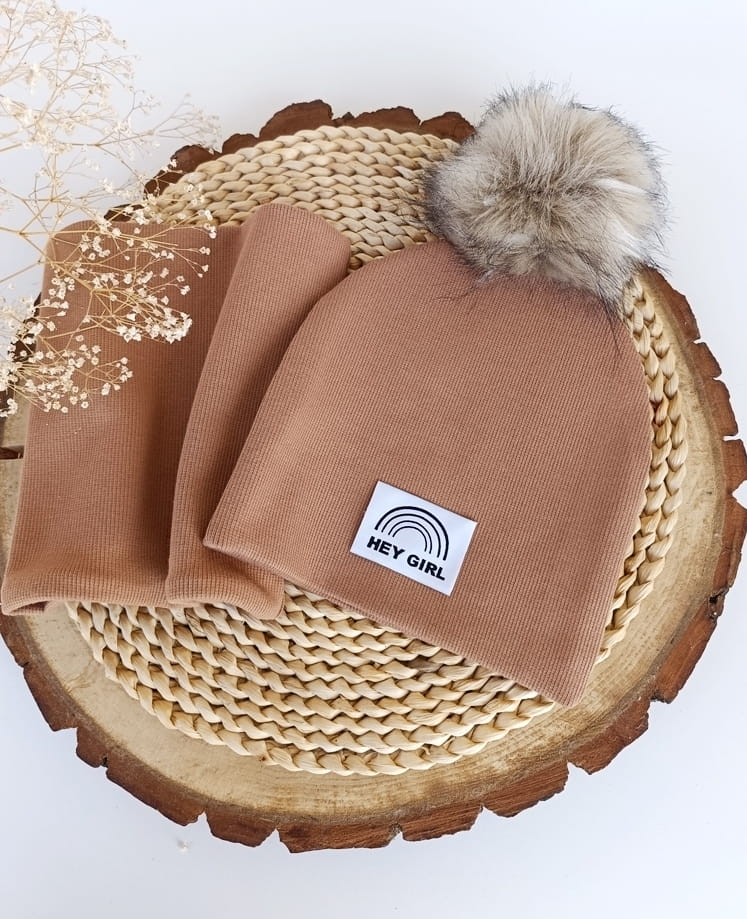 Materiał ściągacz bawełniany prążkowany: To wyjątkowo elastyczny i komfortowy materiał, który idealnie dopasowuje się do kształtu głowy i szyi dziecka. Bawełna zapewnia oddychalność, a prążkowana faktura dodaje estetyki i ciepła.
