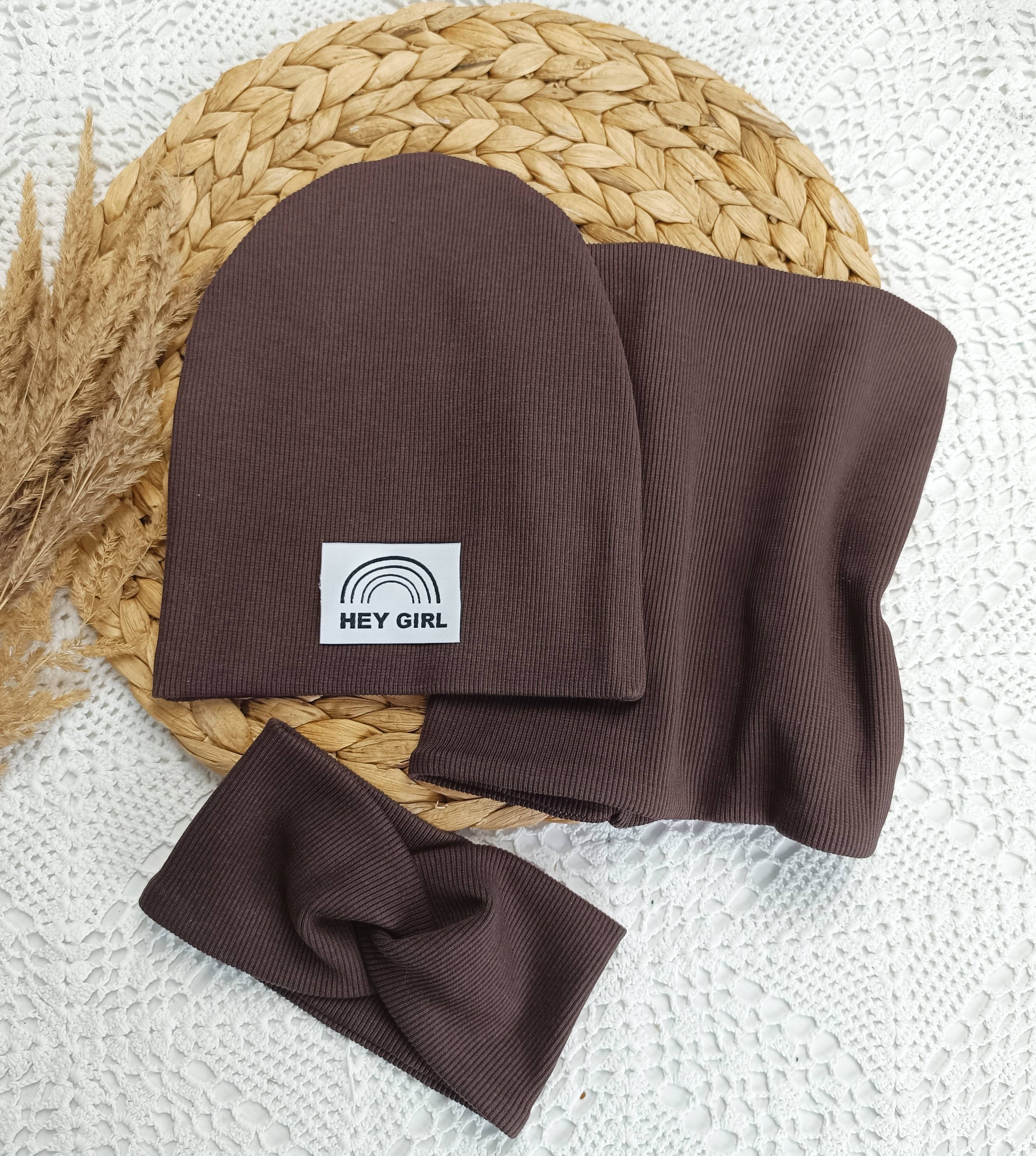 Czapka prosta z kominem ciemny brąz GIRL