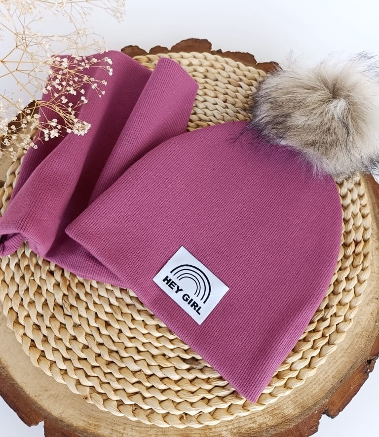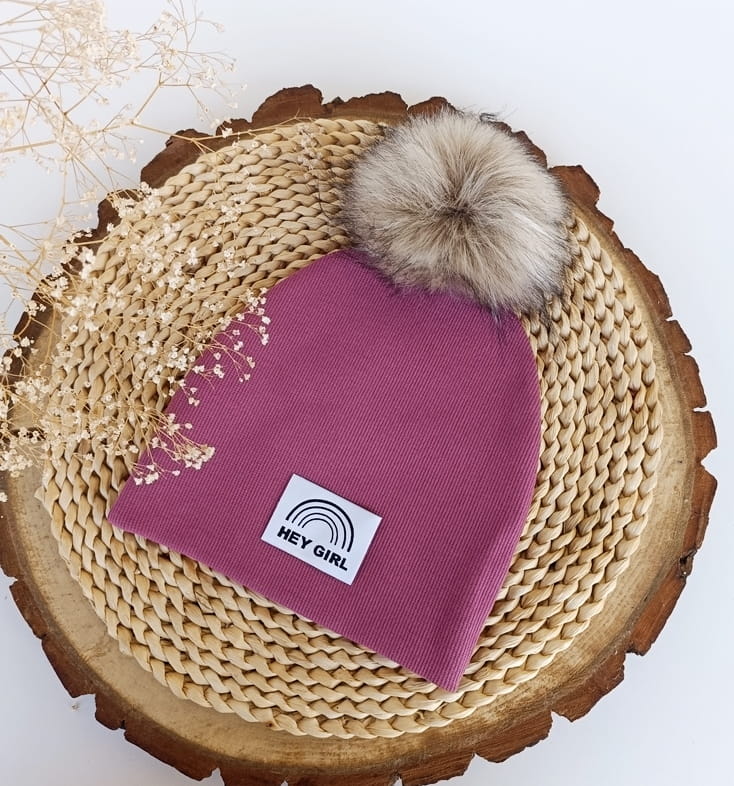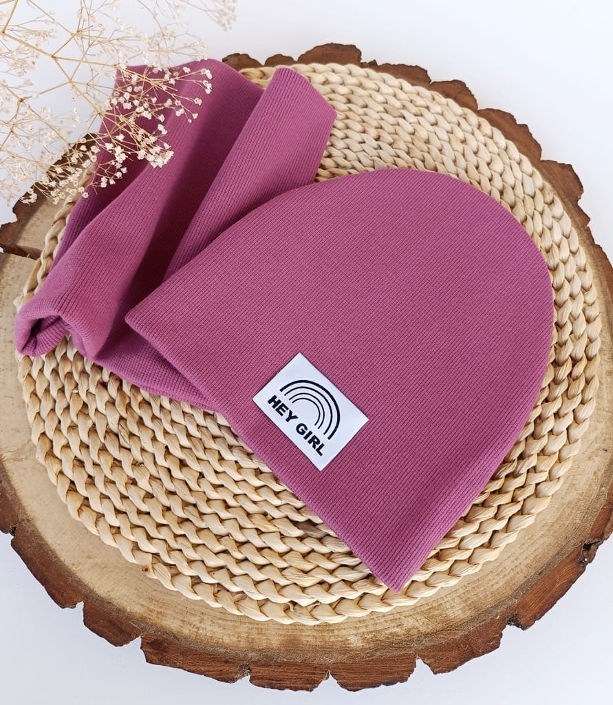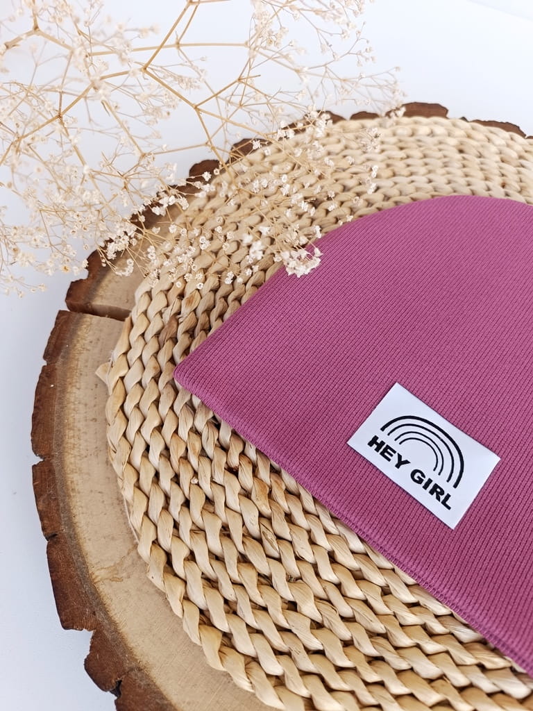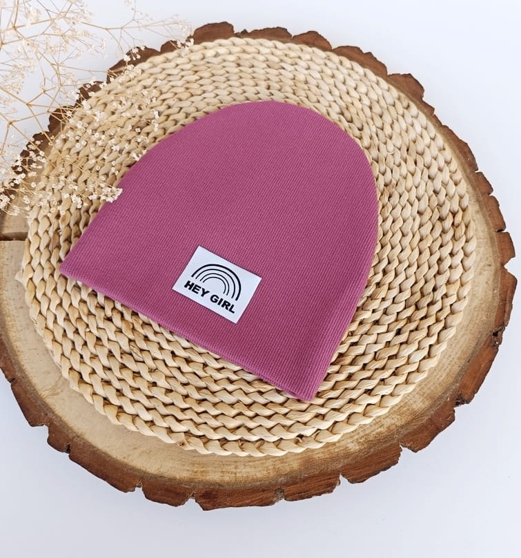 Na czapce może być naszyta metka szara podłużna z logo firmy lub HEJ GIRL.