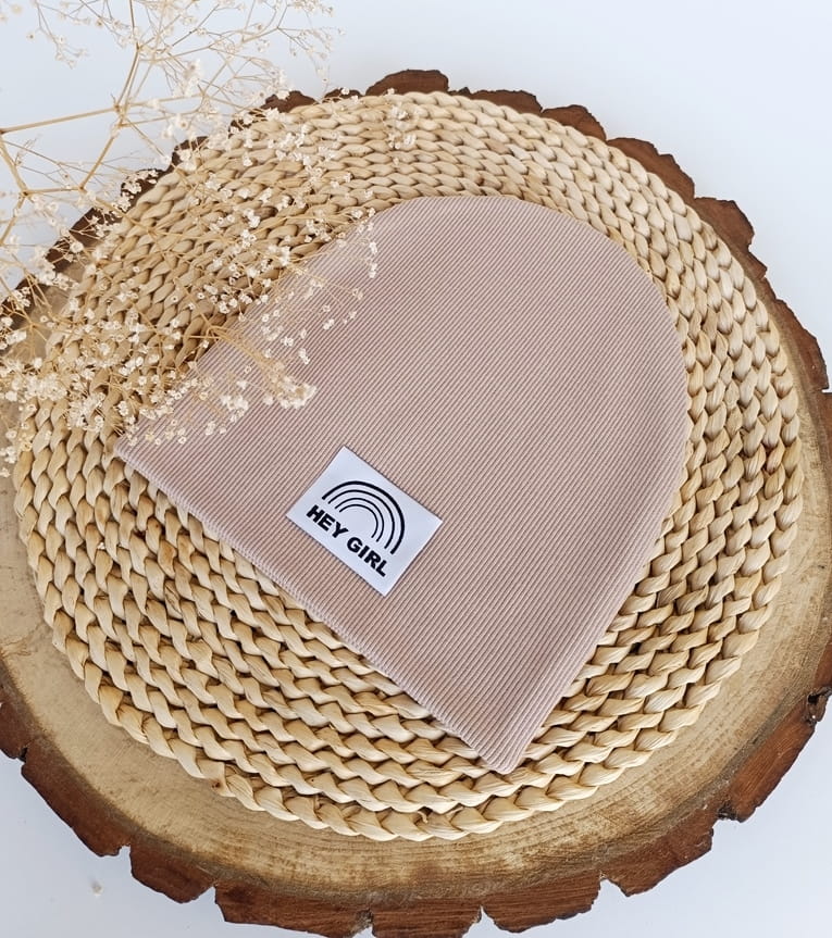 Na czapce może być naszyta metka szara podłużna z logo firmy lub HEJ GIRL.