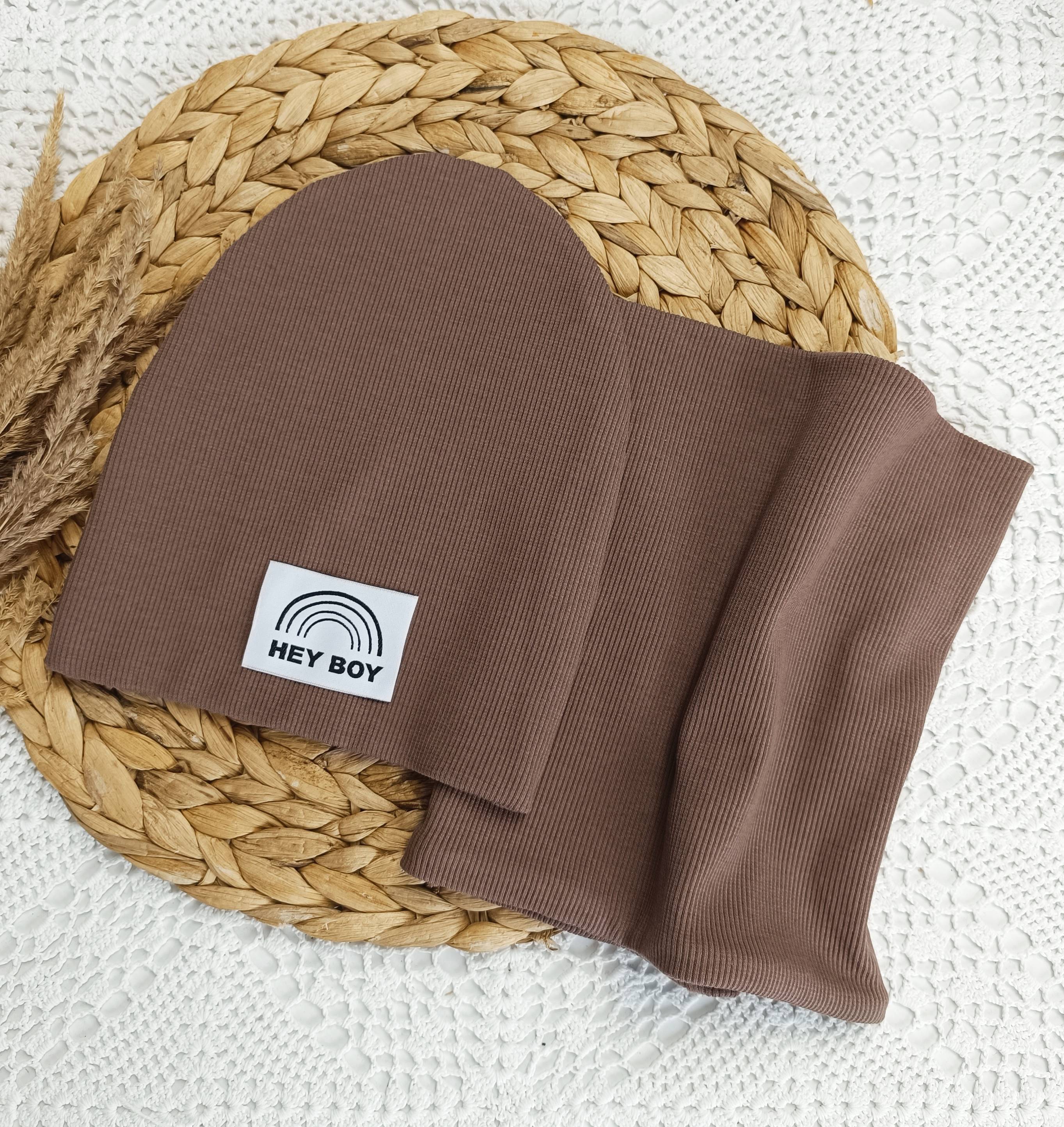Materiał ściągacz bawełniany prążkowany: To wyjątkowo elastyczny i komfortowy materiał, który idealnie dopasowuje się do kształtu głowy i szyi dziecka. Bawełna zapewnia oddychalność, a prążkowana faktura dodaje estetyki i ciepła.
