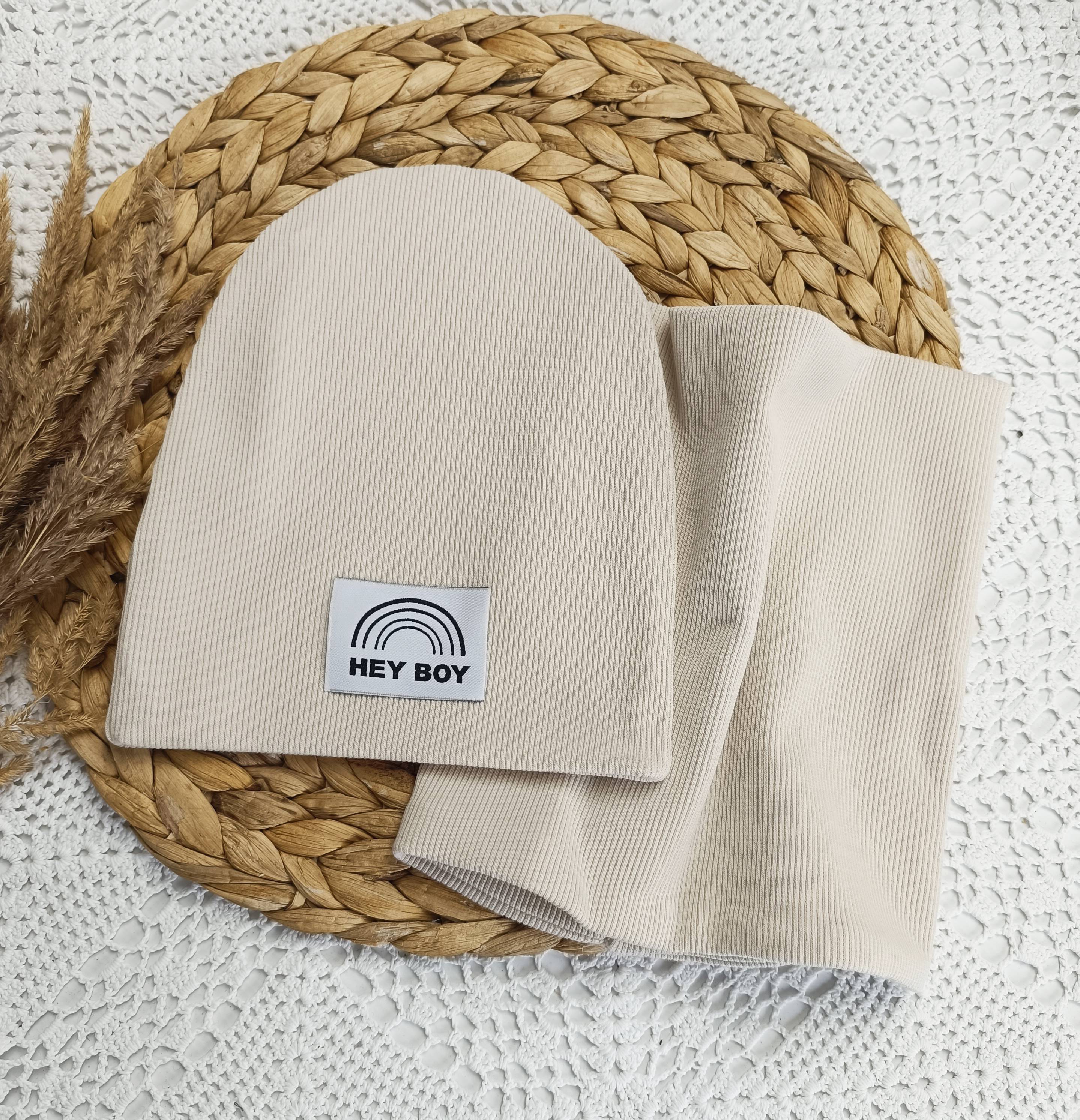Materiał ściągacz bawełniany prążkowany: To wyjątkowo elastyczny i komfortowy materiał, który idealnie dopasowuje się do kształtu głowy i szyi dziecka. Bawełna zapewnia oddychalność, a prążkowana faktura dodaje estetyki i ciepła.
