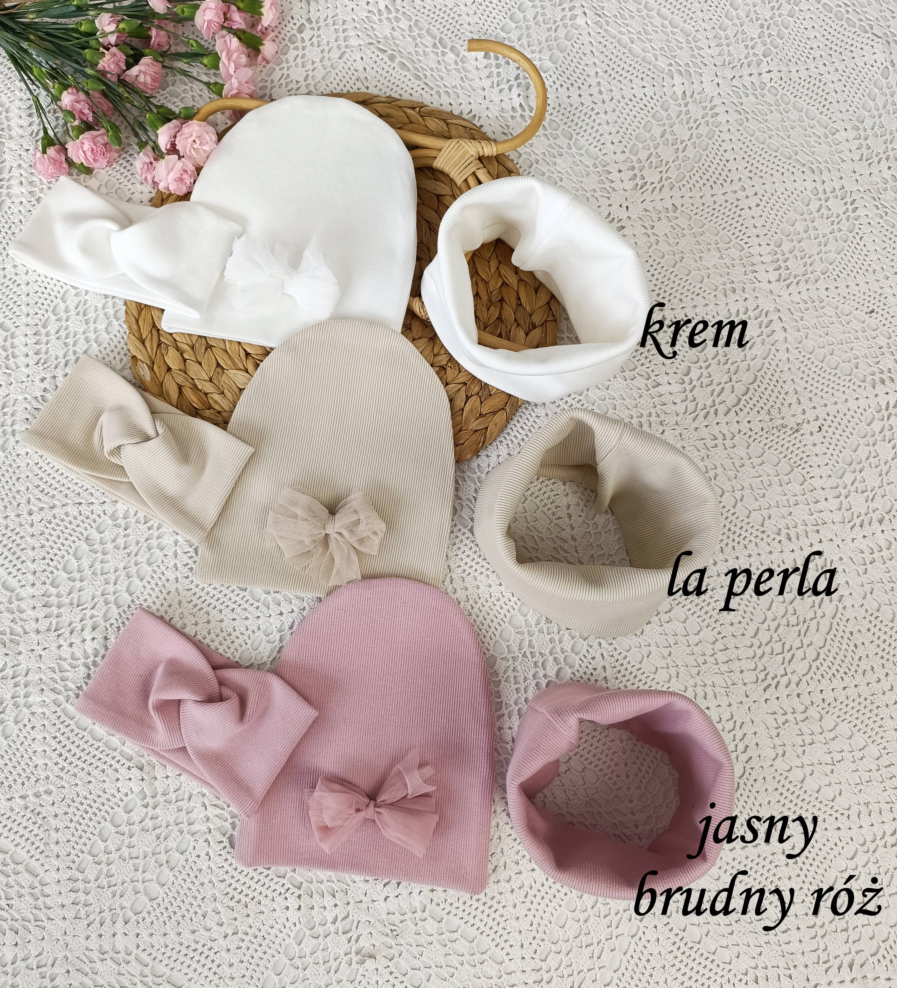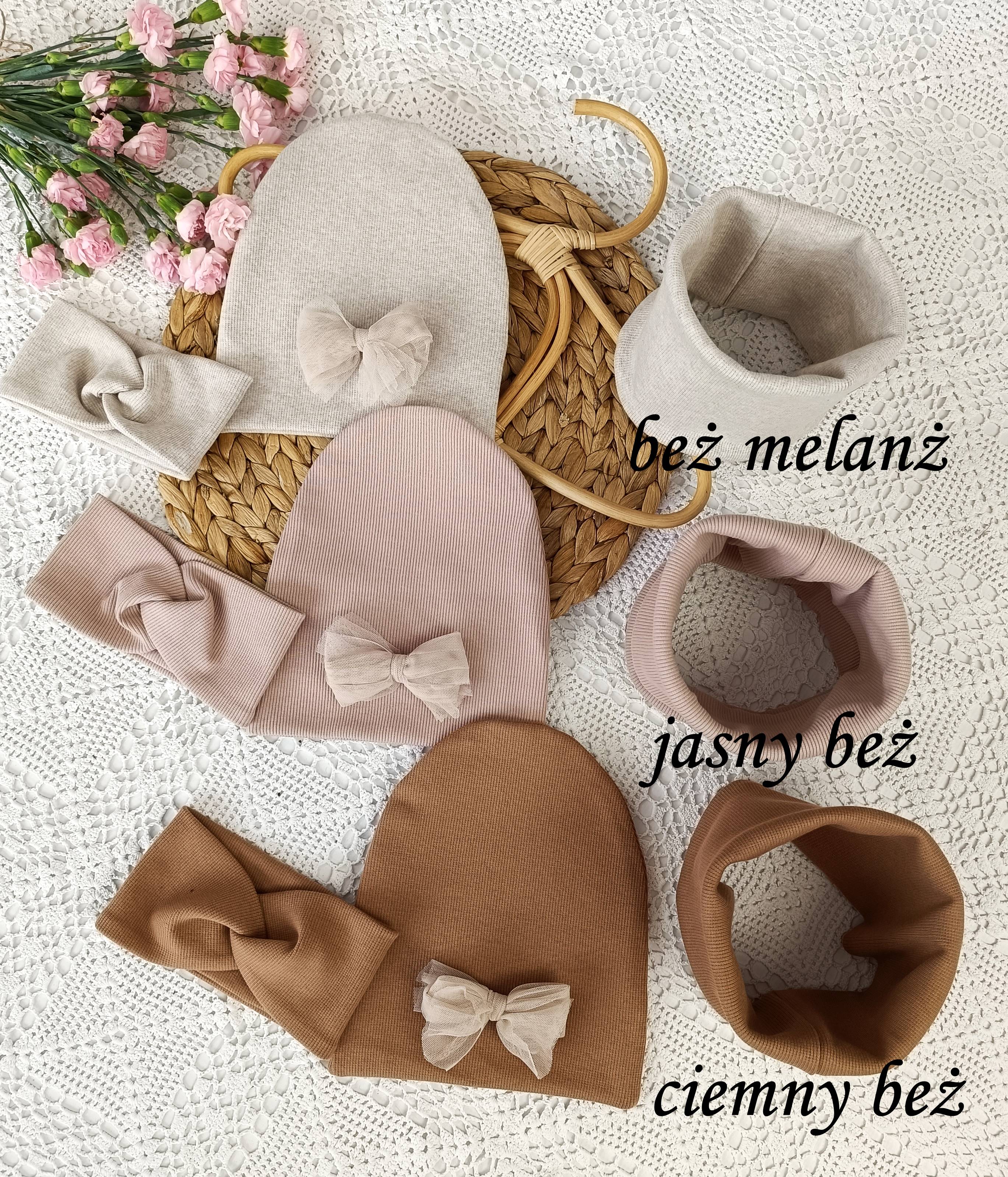 Materiał ściągacz bawełniany prążkowany: To wyjątkowo elastyczny i komfortowy materiał, który idealnie dopasowuje się do kształtu głowy i szyi dziecka. Bawełna zapewnia oddychalność, a prążkowana faktura dodaje estetyki i ciepła.