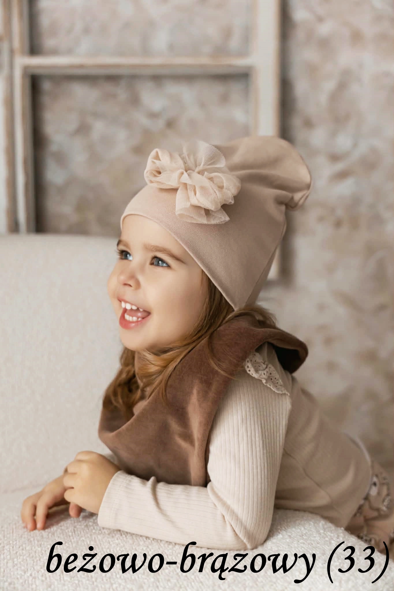 Czapeczka ma uroczą kokardkę co dodatkowo upiększa komplet.