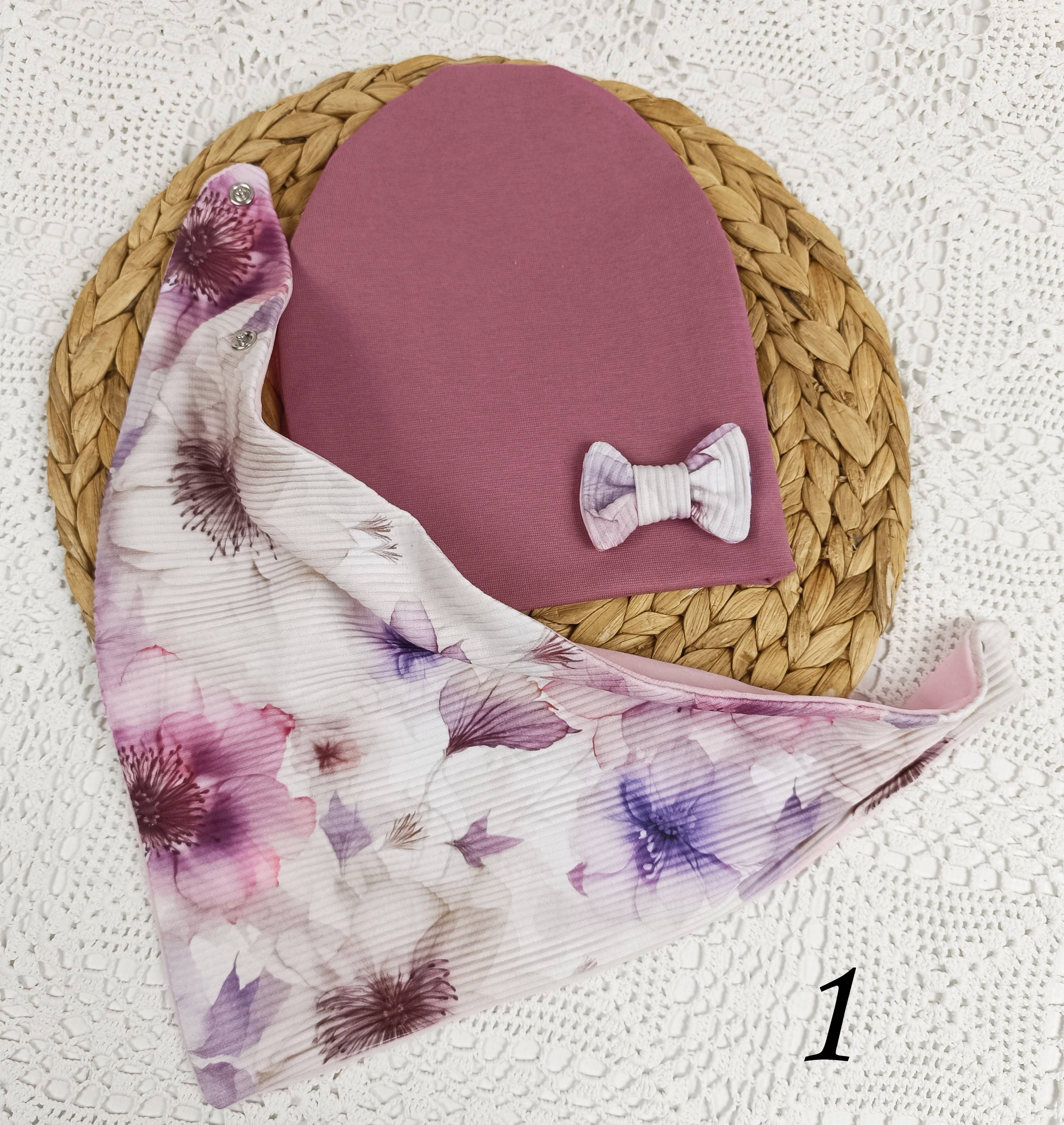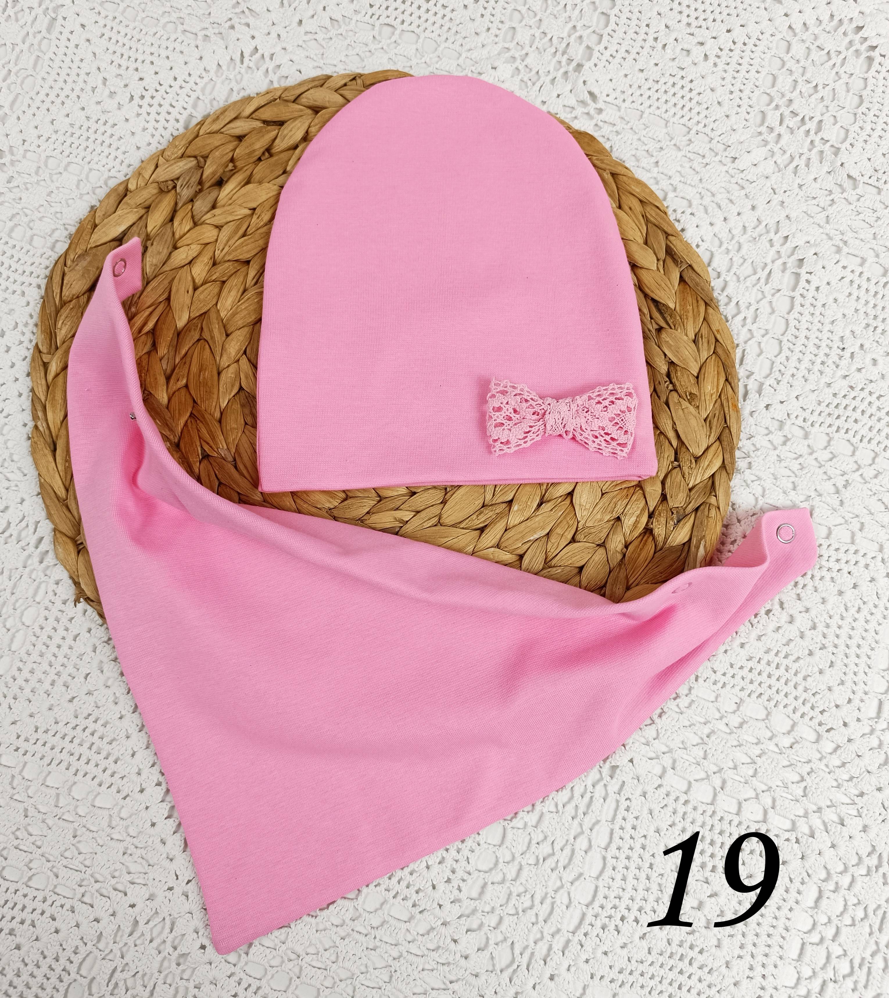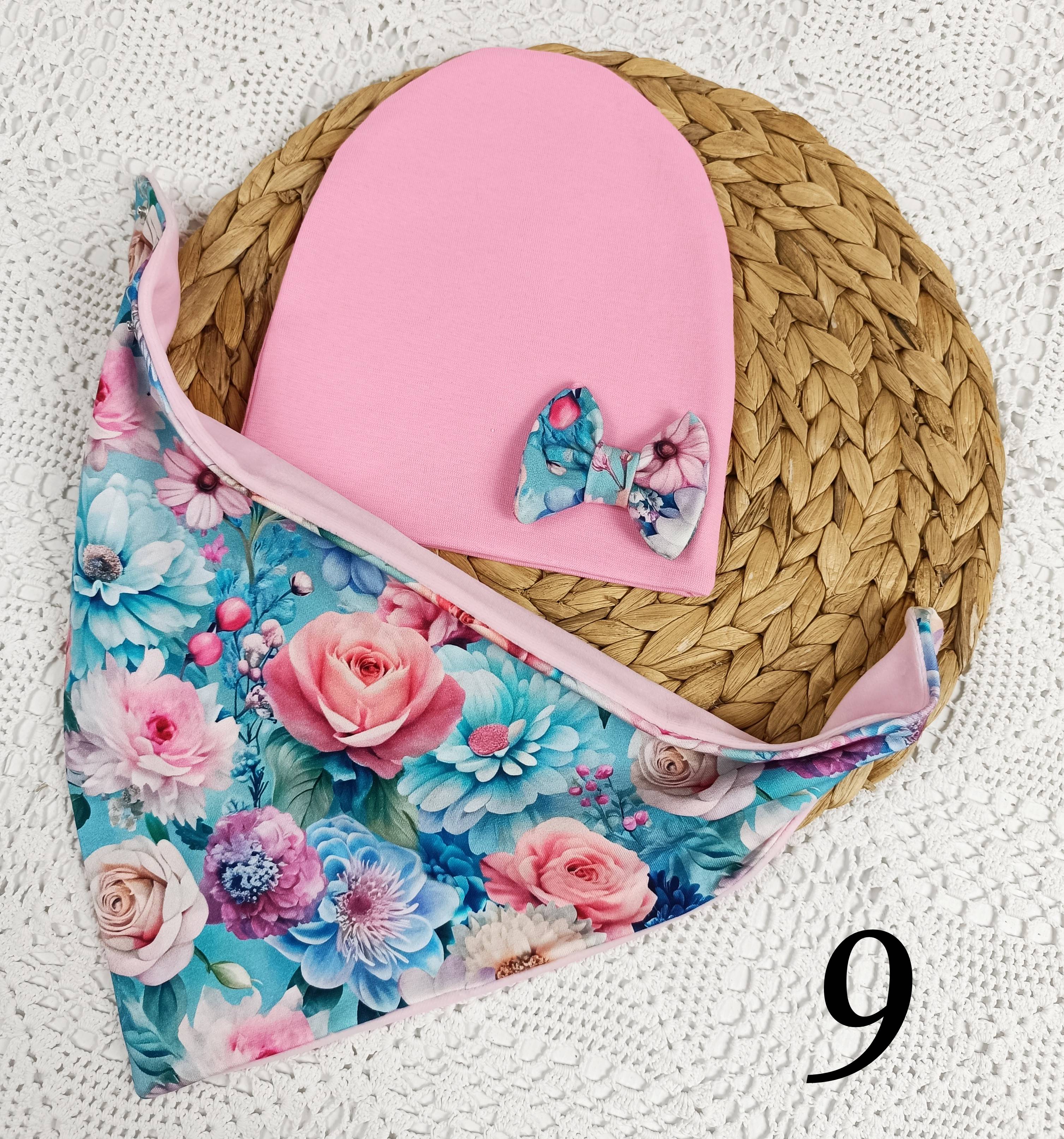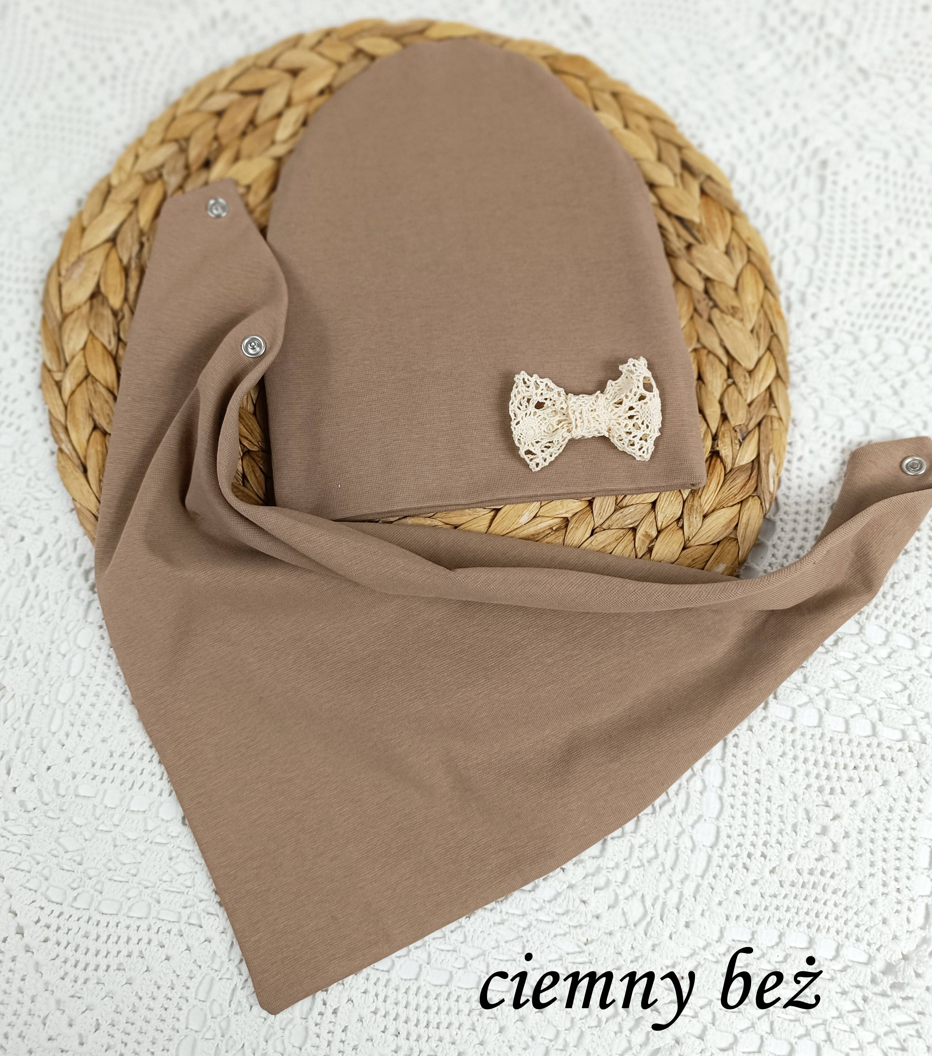 Czapeczka i chusta z podwójnej dzianiny bawełnianej.