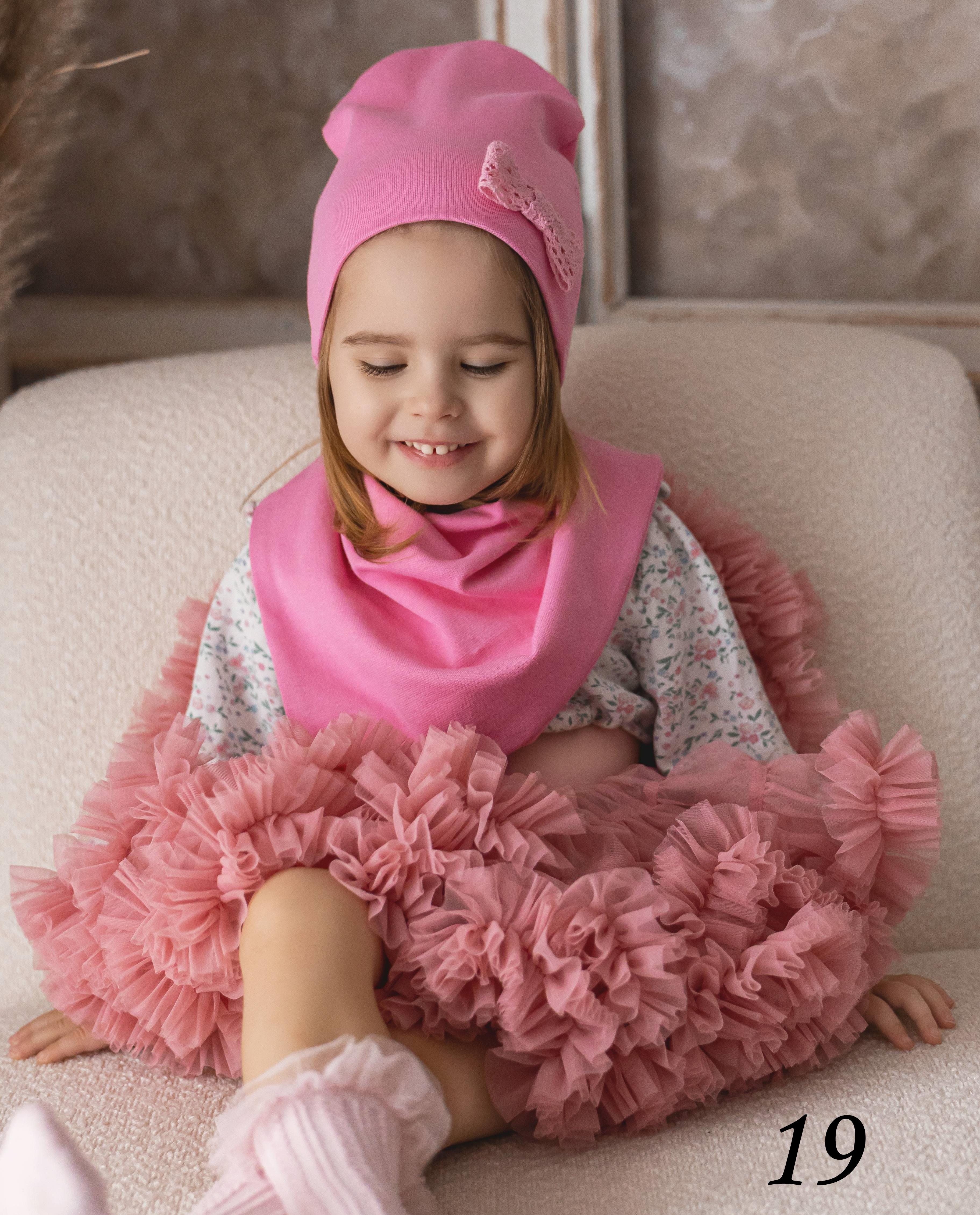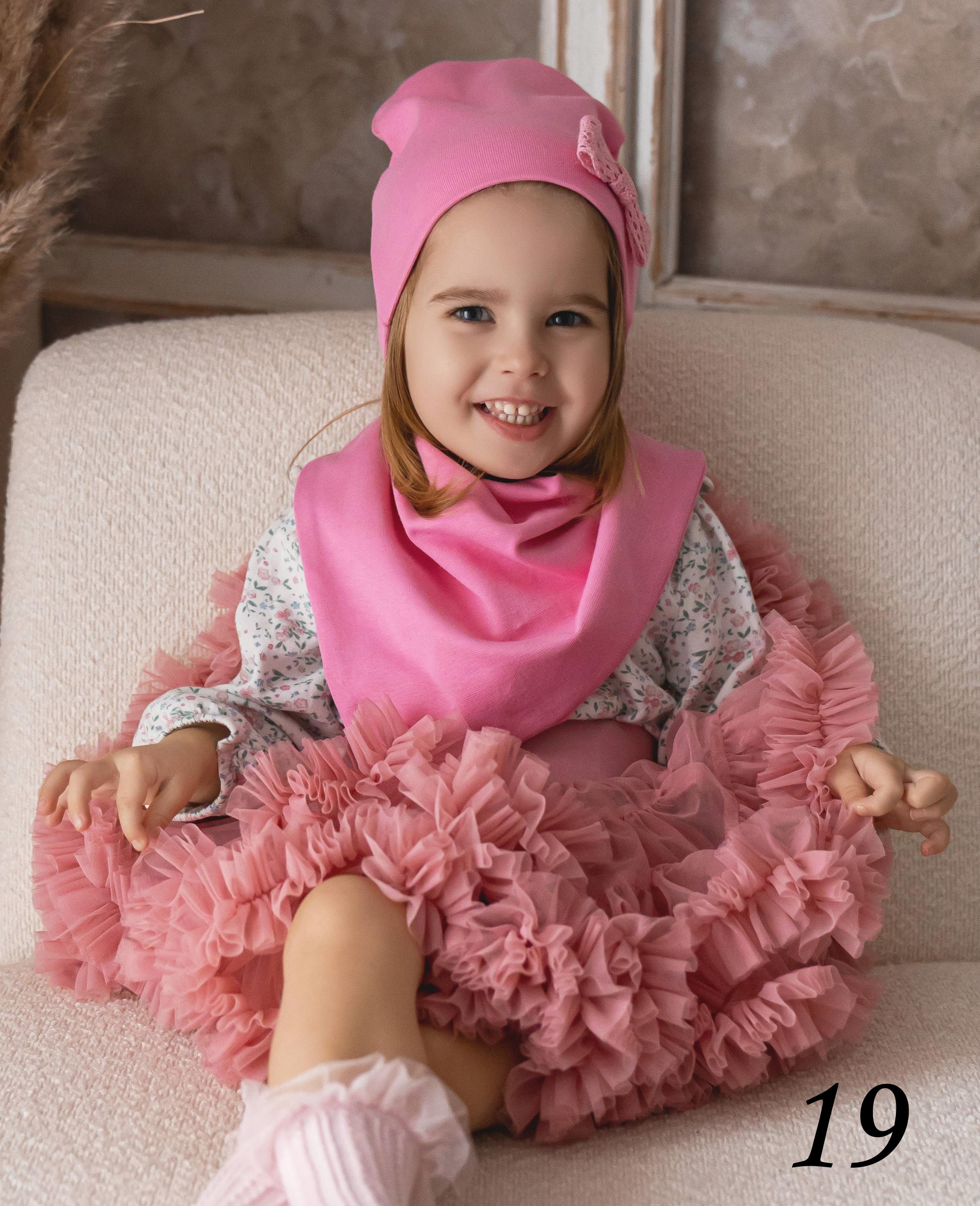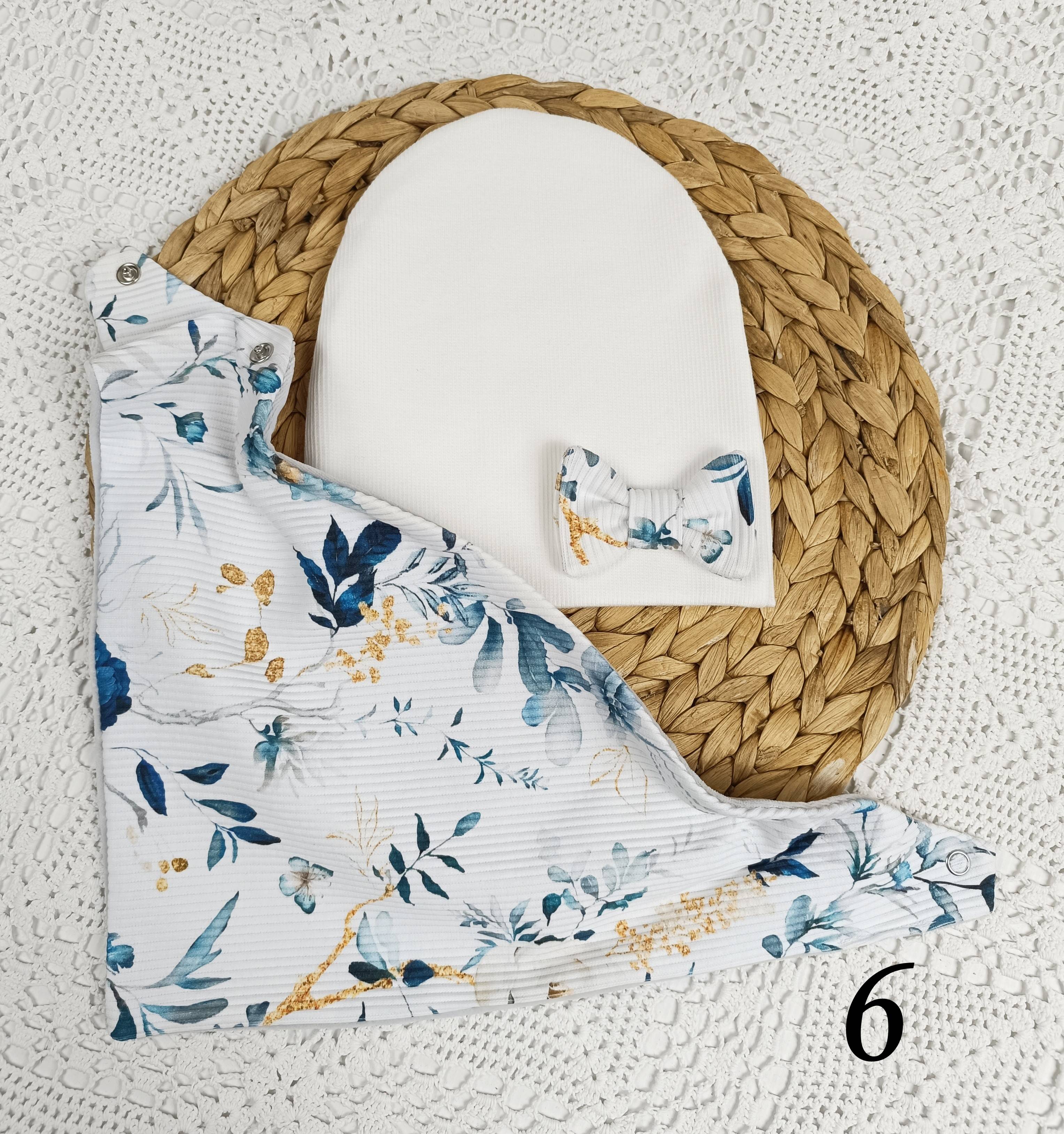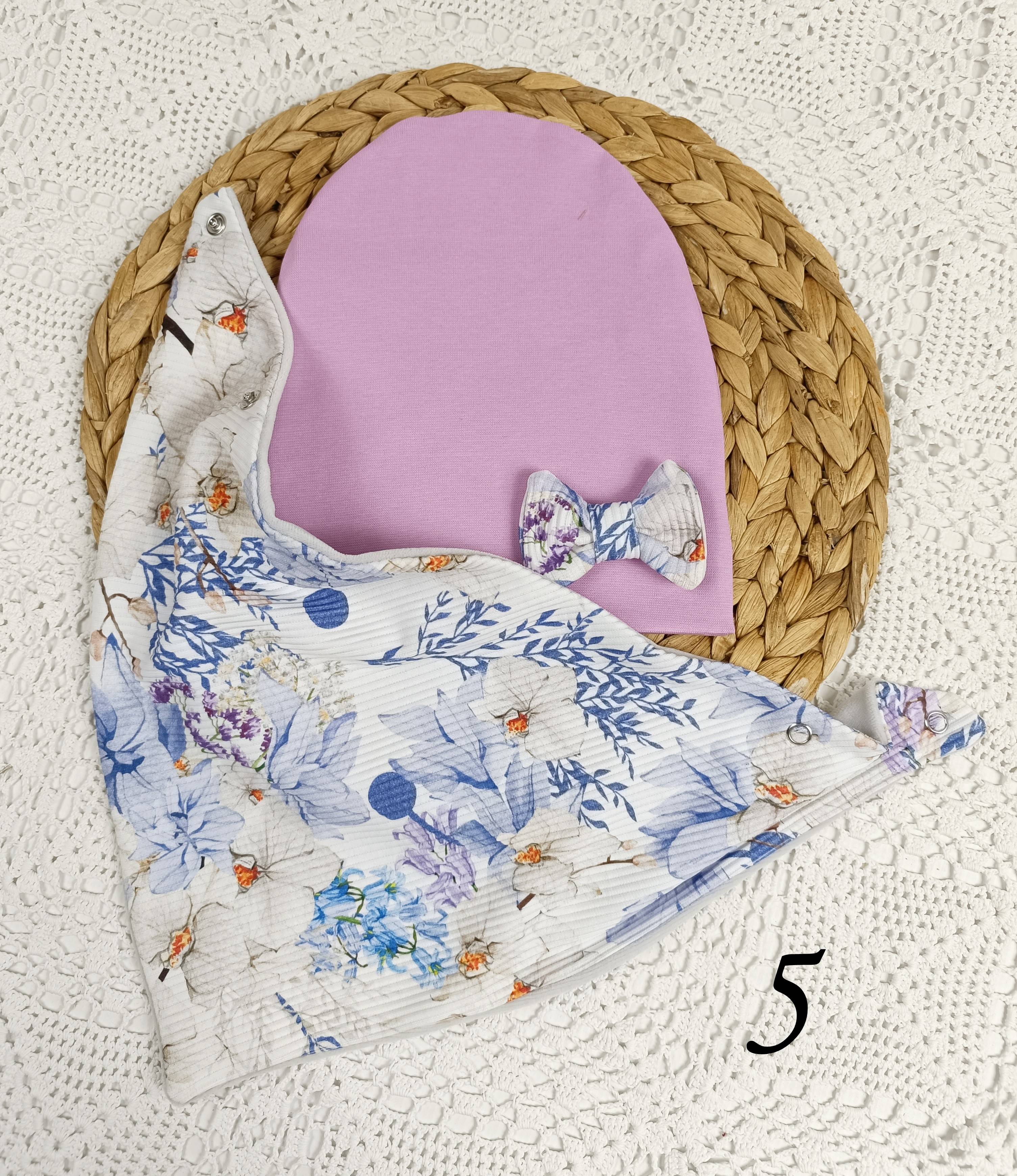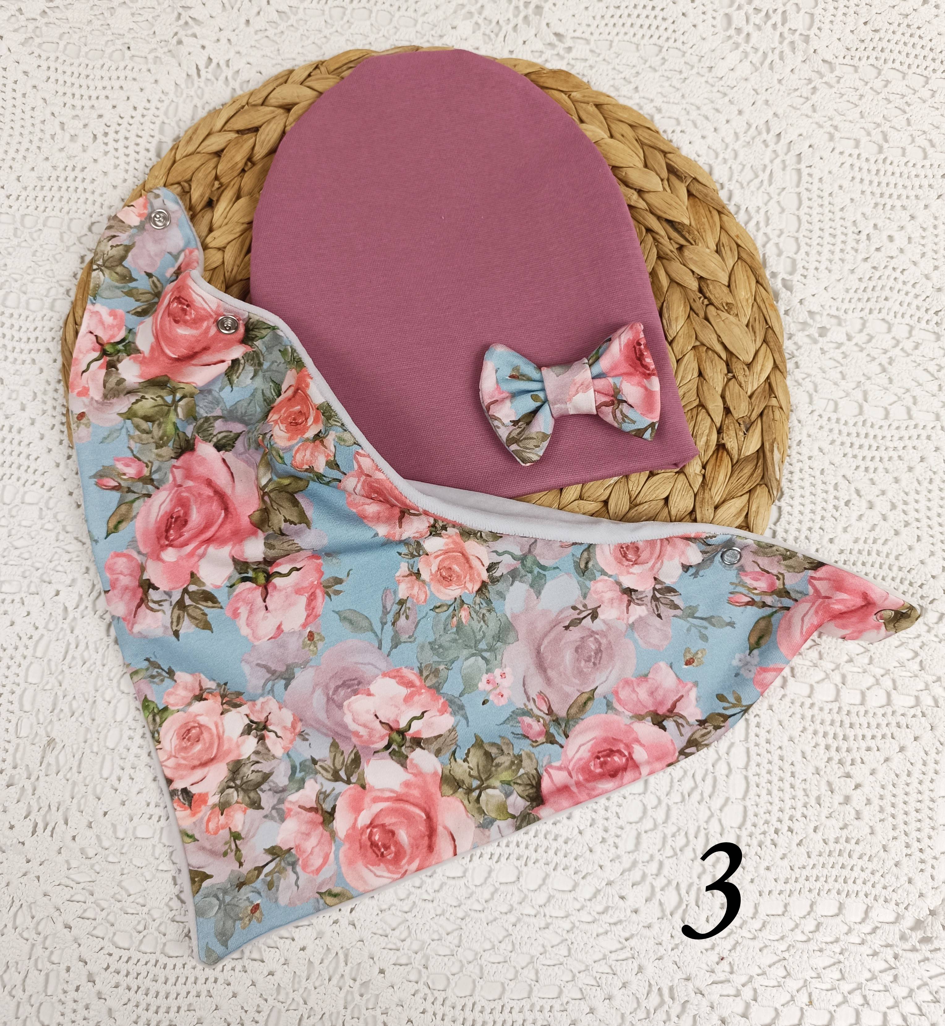 Czapeczka i chusta z podwójnej dzianiny bawełnianej.