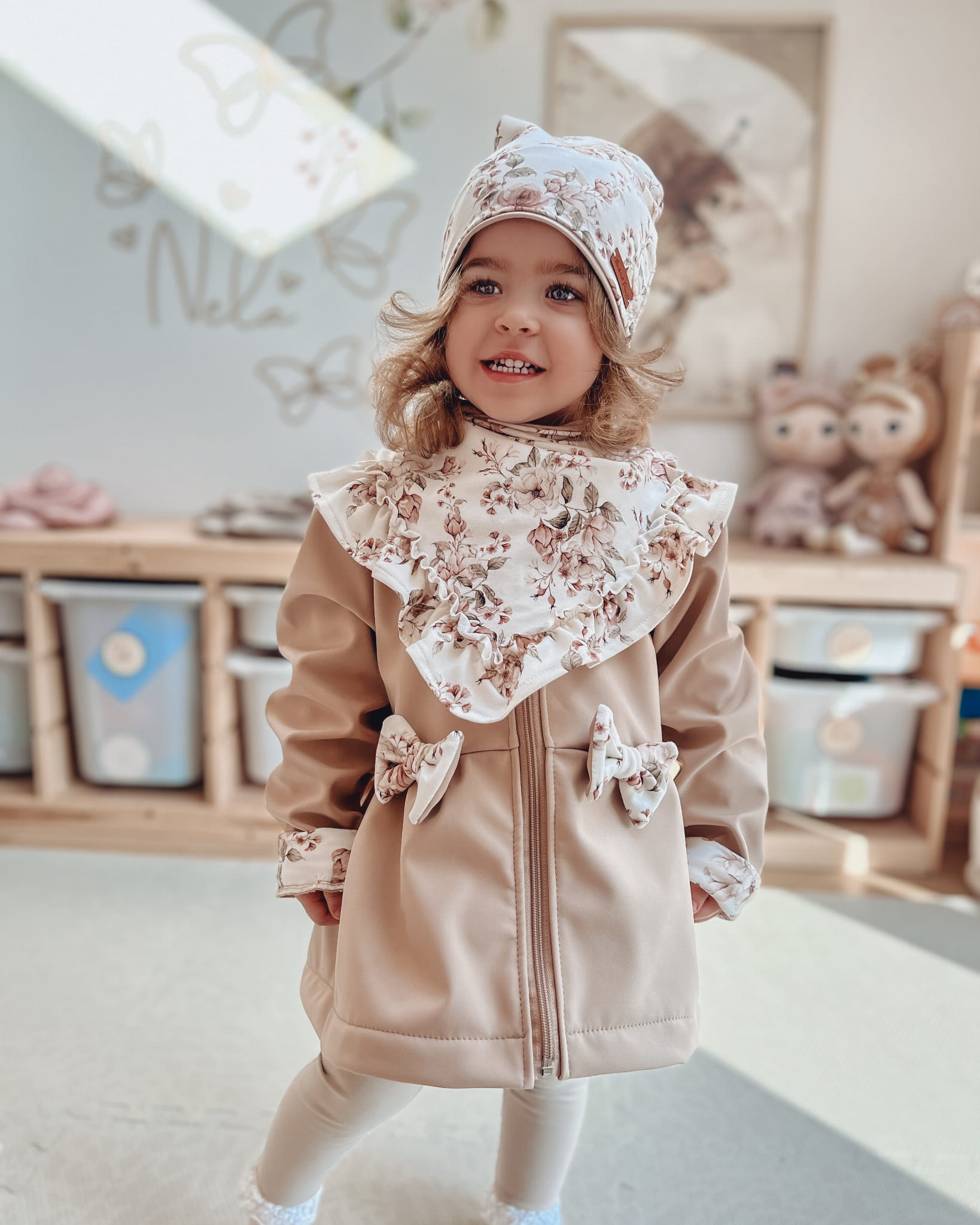 Kurtka z uszkami i kokardkami (królik) newbie rosies krem