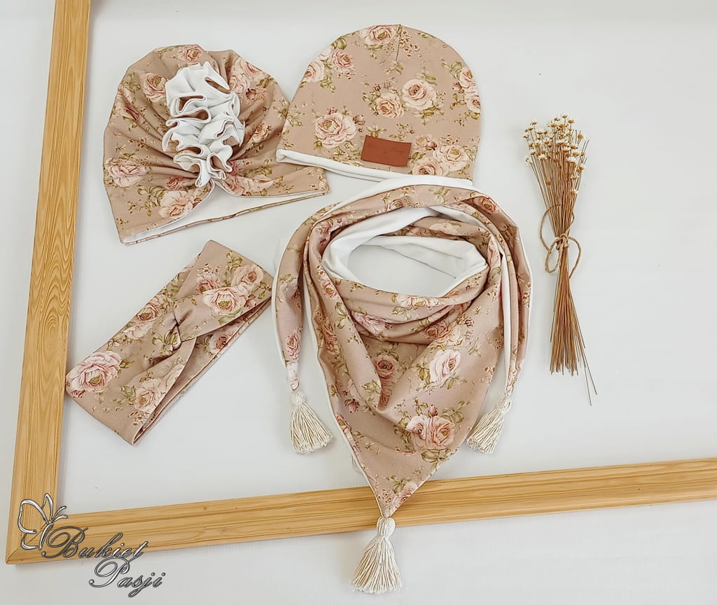 Zestawy możecie dowolnie komponować , może to być sama czapka z chustką jak i również dodatkowo możemy uszyć opaseczkę bądź turban.