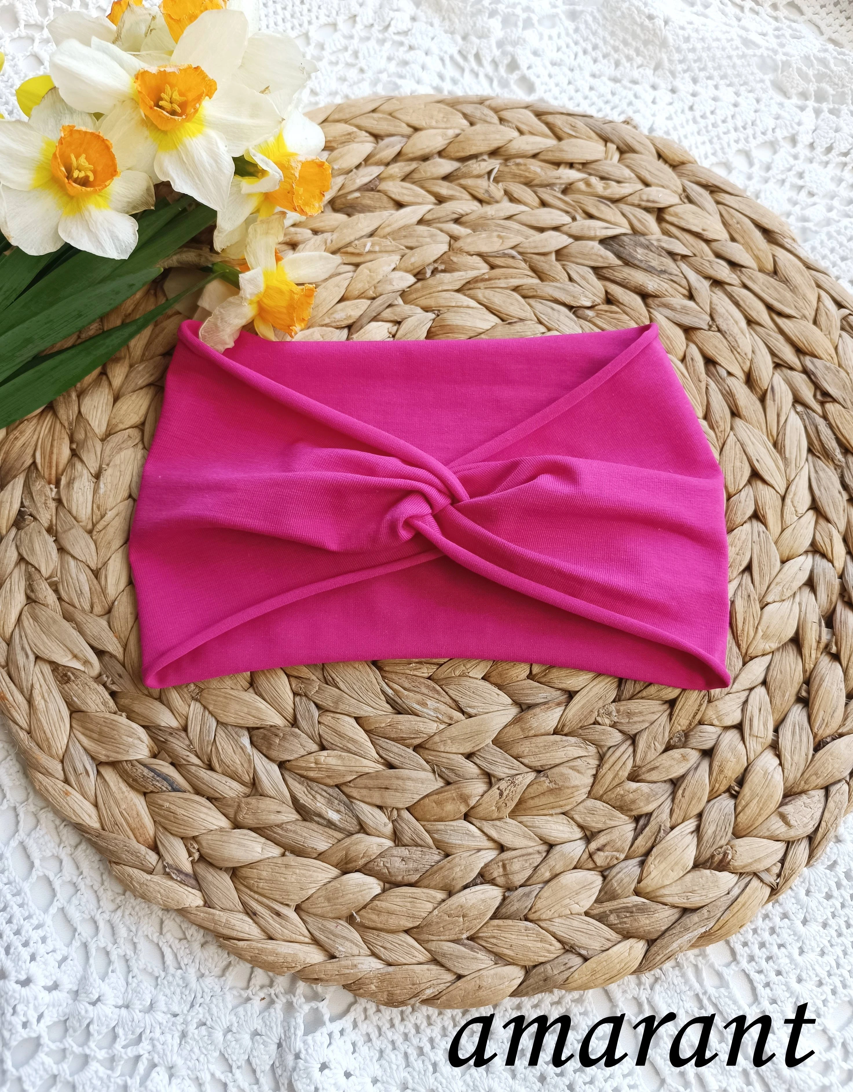 Ta opaska jest uszyta z cienkiej dzianiny bawełnianej, co sprawia, że jest przyjemna w dotyku i wygodna do noszenia.