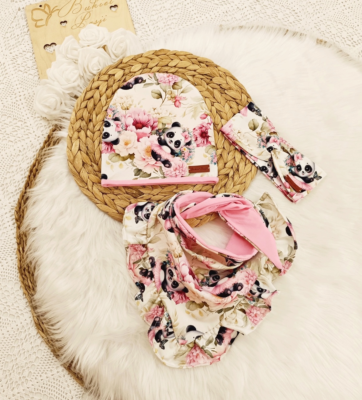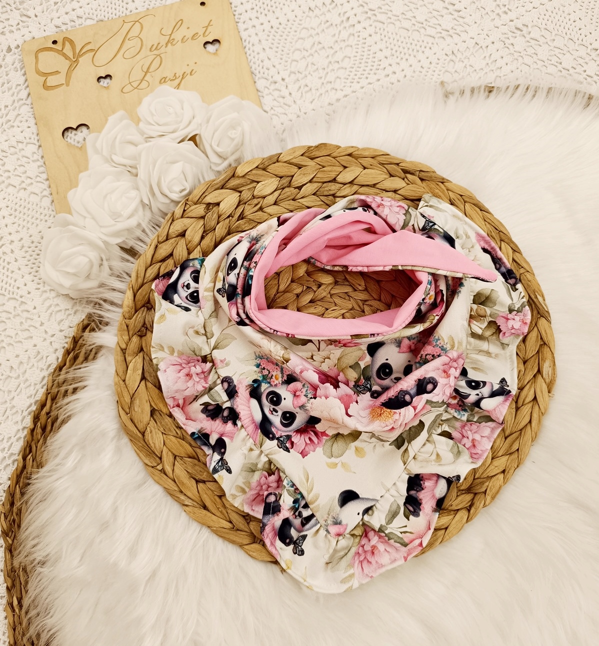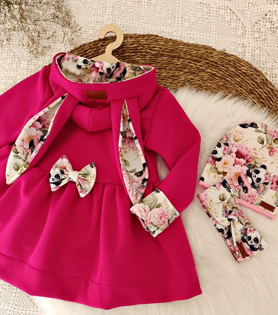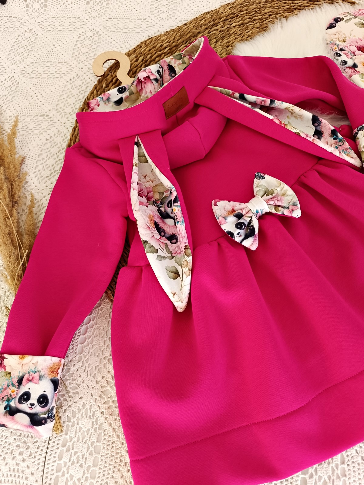 Całość jest ozdobiona delikatnym, kwiatowym motywem z uroczymi pandami w wyjątkowych odcieniach w którym każda mała dama będzie się czuć jak w świecie baśni.