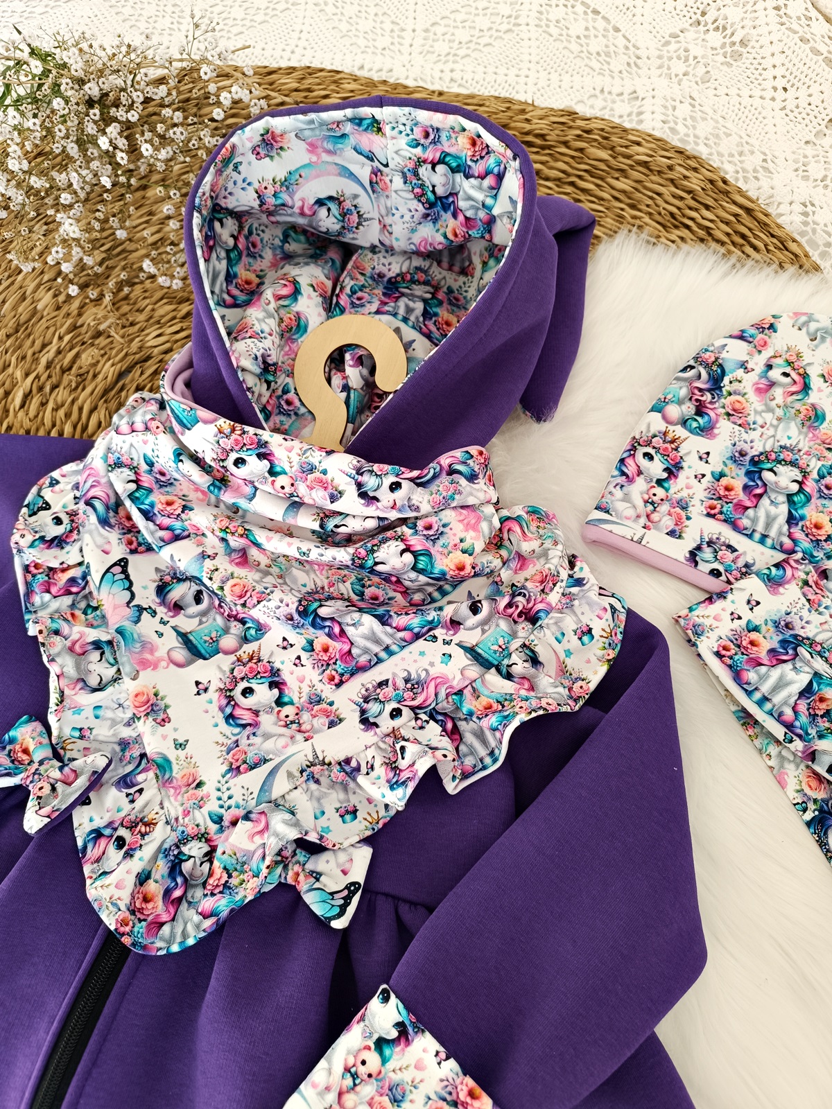 Płaszczyk dla dziewczynki fioletowy, kucyki