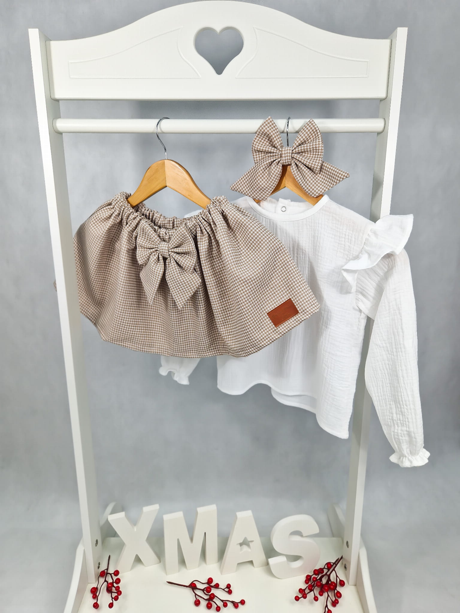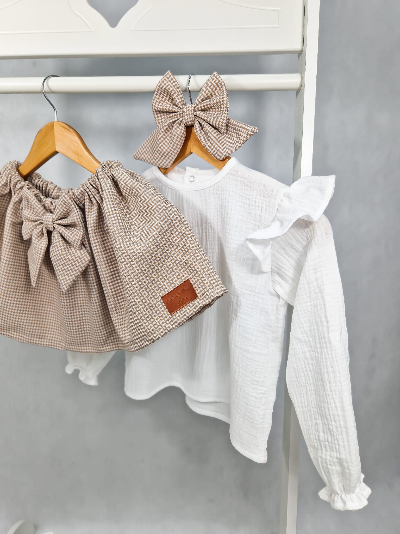 Dodatkowo, aby podkreślić urok całego zestawu, proponujemy również zamówienie eleganckiej spinki do włosów. Spinka pasuje do wzoru spódniczki i bluzeczki. Doskonała do utrzymania włosów z dala od twarzy podczas codziennych zabaw.