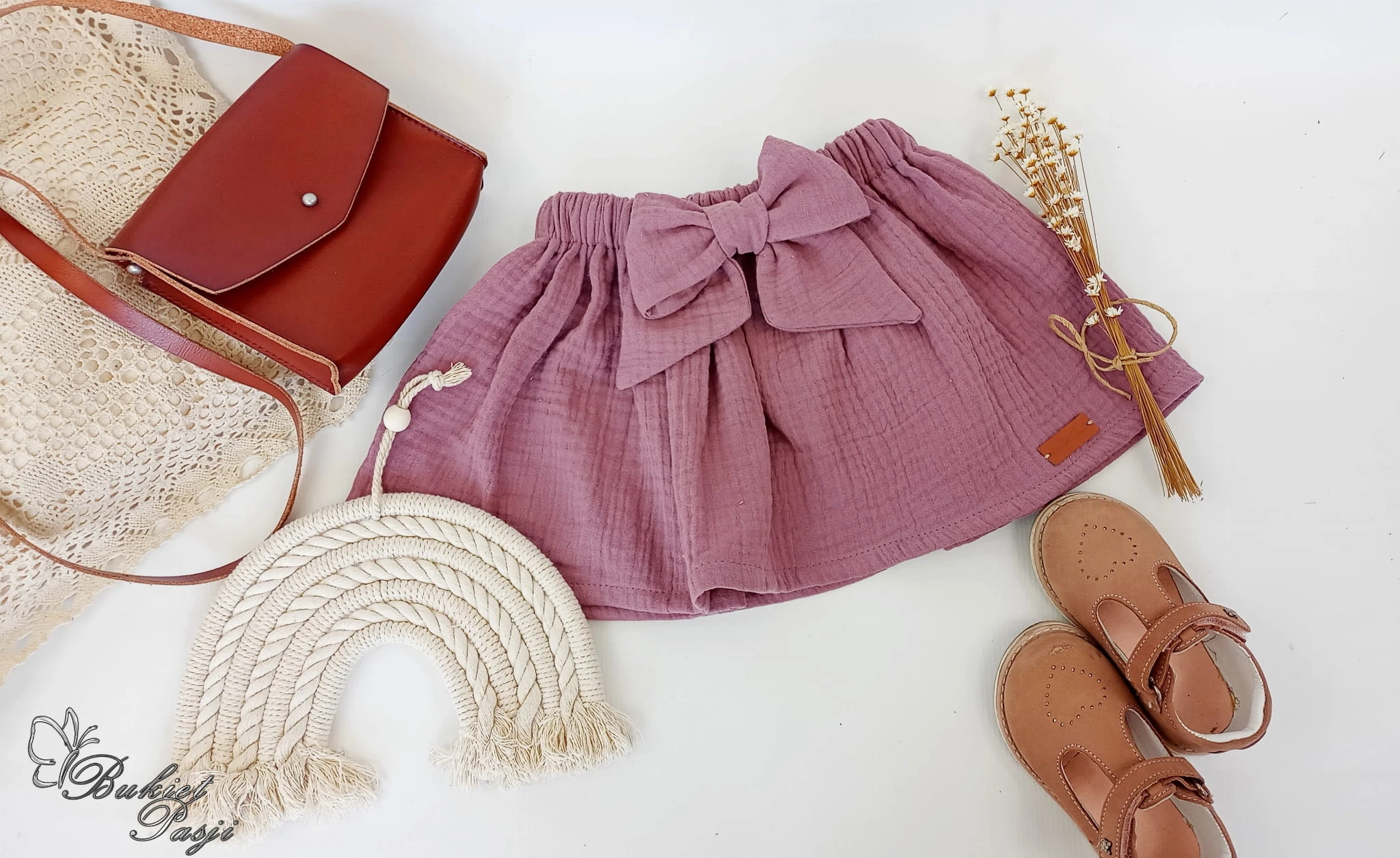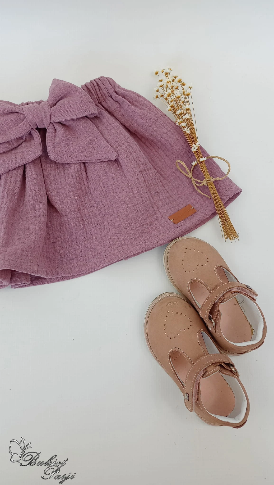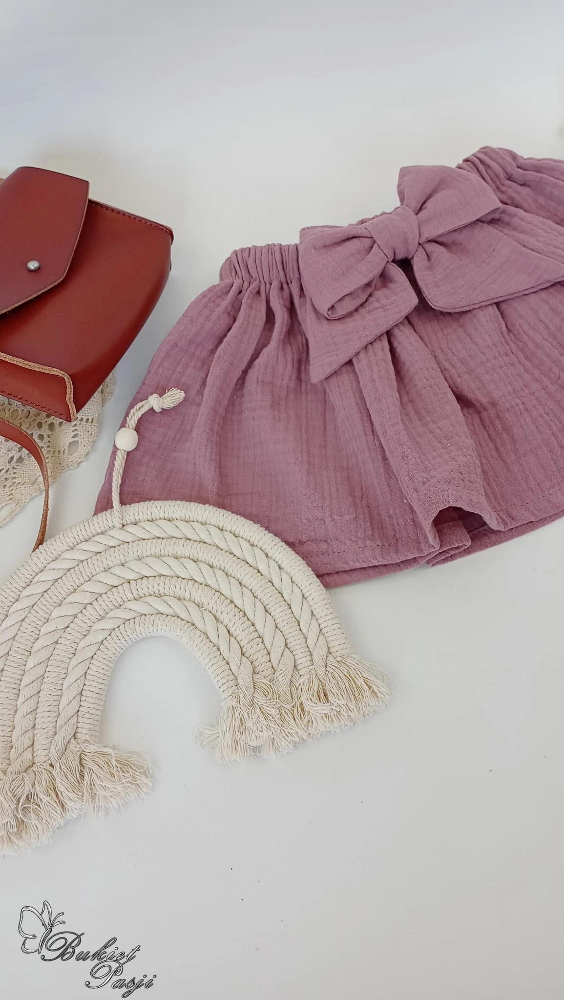 Spódniczka muślinowa wrzos z kokardą