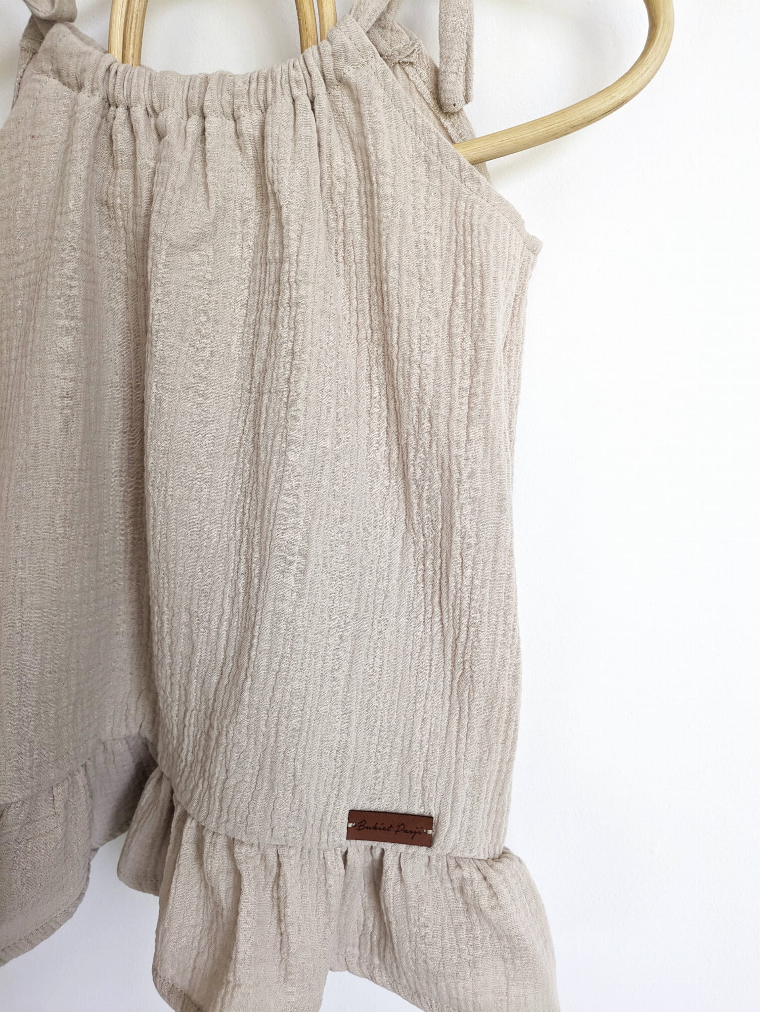 Dzięki wiązanym sznureczkom dopasujesz długość ramiączek do dziecka.