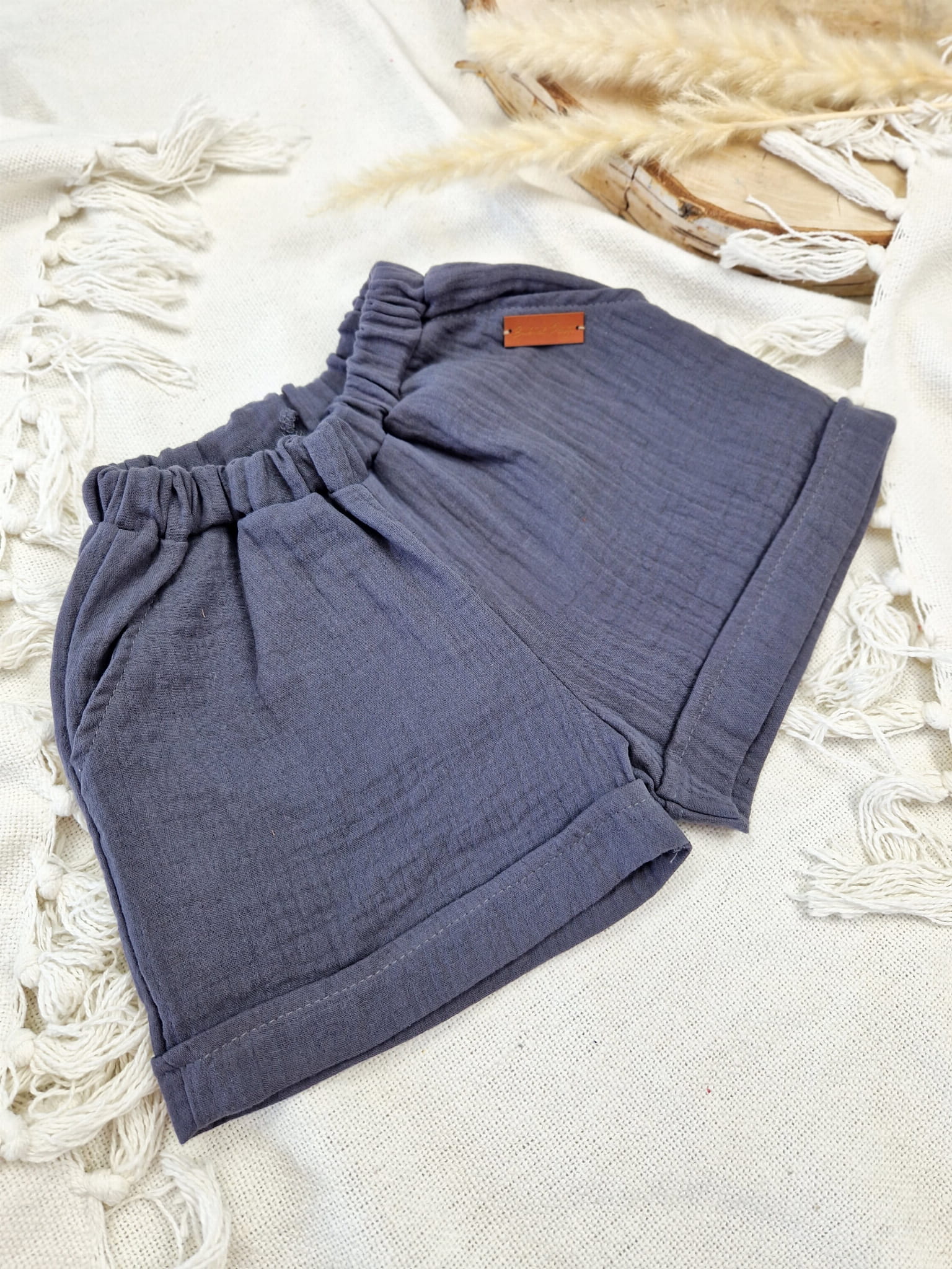 Szorty z tkaniny bawełnianej muślinowej.