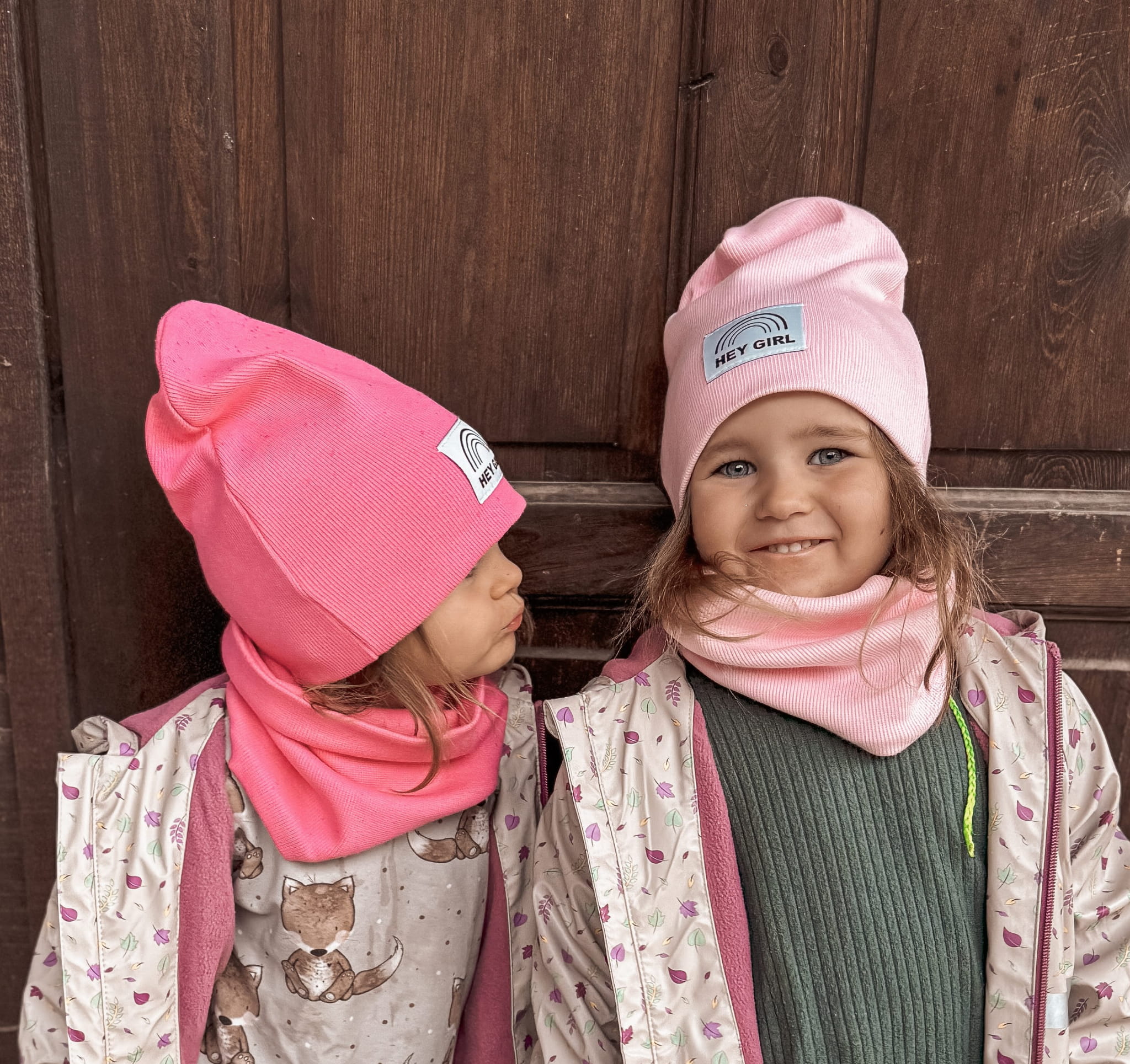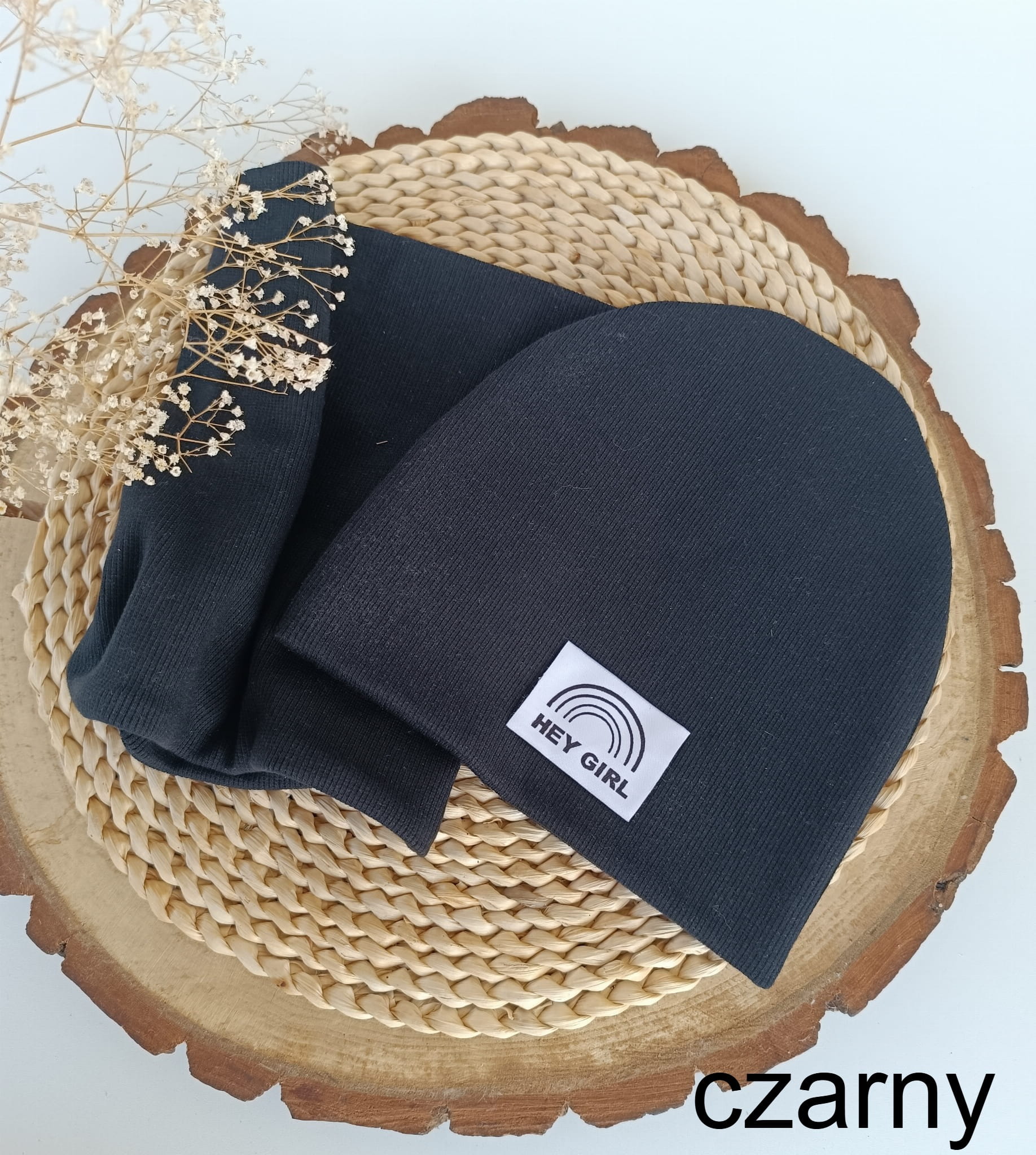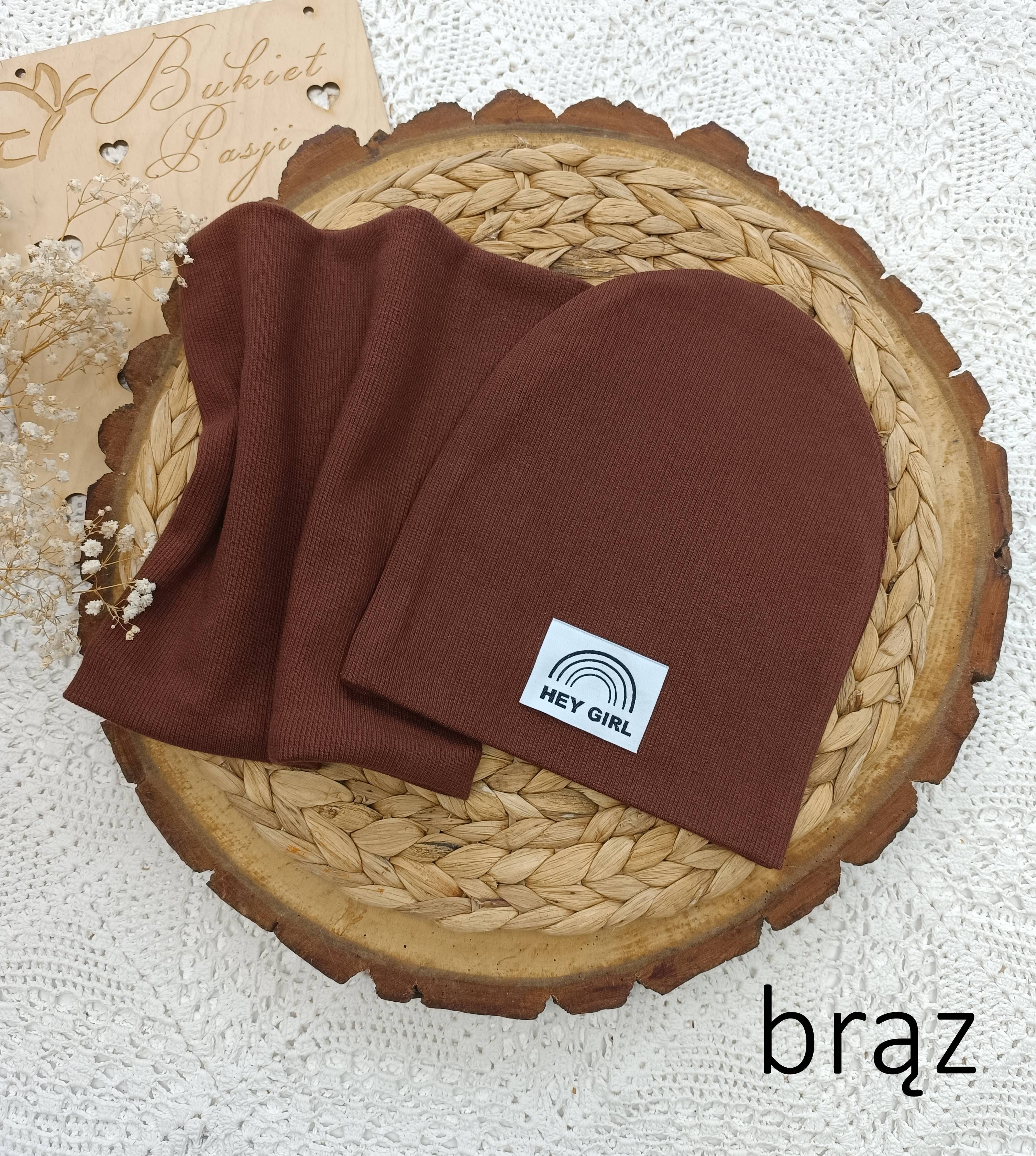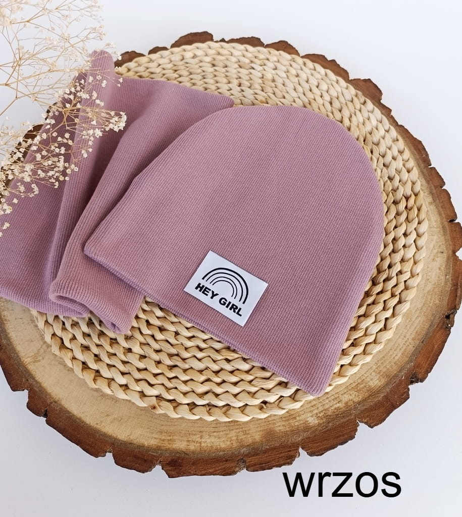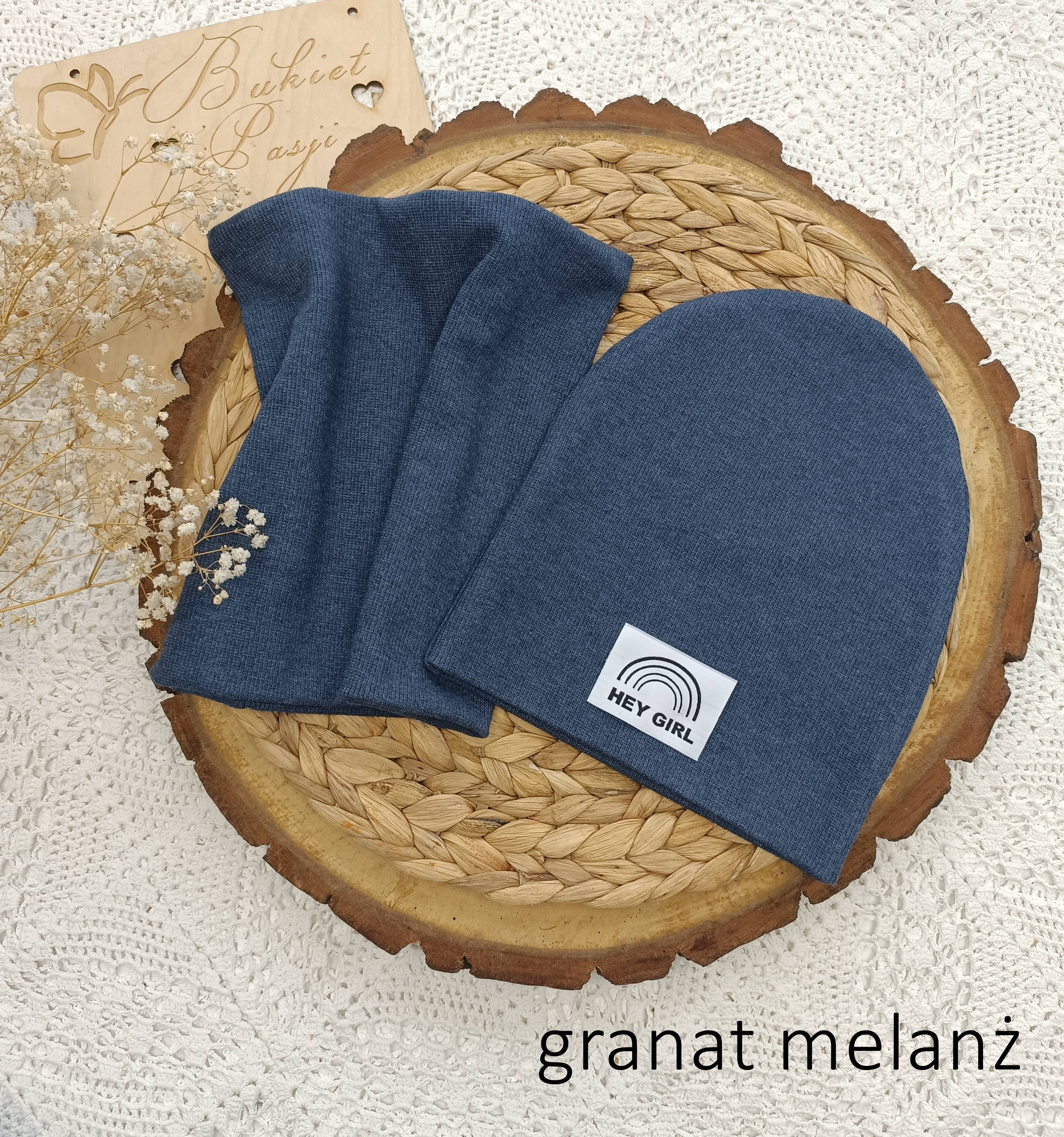 Na czapce może być naszyta metka szara podłużna z logo firmy lub HEJ GIRL.