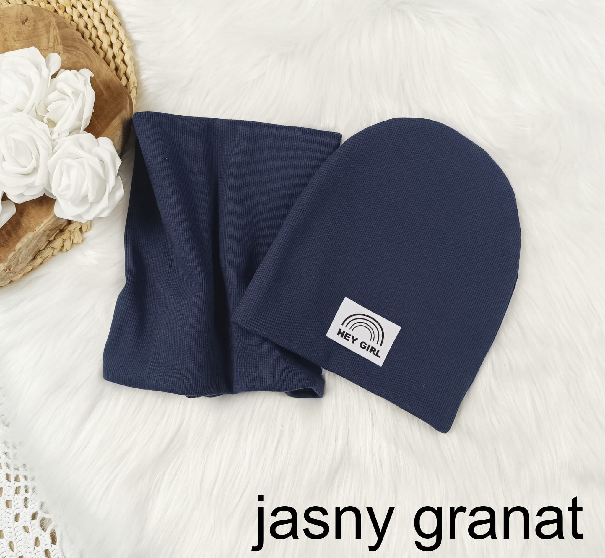 Materiał ściągacz bawełniany prążkowany: To wyjątkowo elastyczny i komfortowy materiał, który idealnie dopasowuje się do kształtu głowy i szyi dziecka. Bawełna zapewnia oddychalność, a prążkowana faktura dodaje estetyki i ciepła.