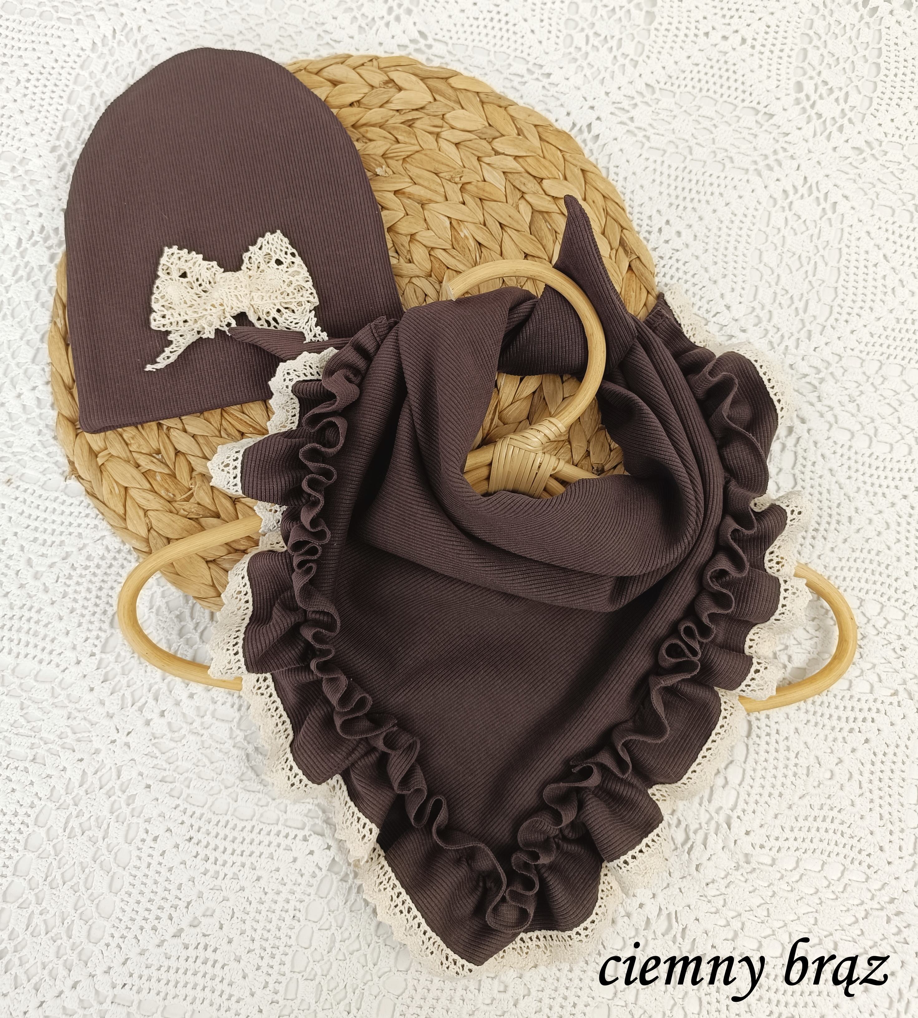 Zestaw: Czapka z kokardką i chusta - ciemny brąz