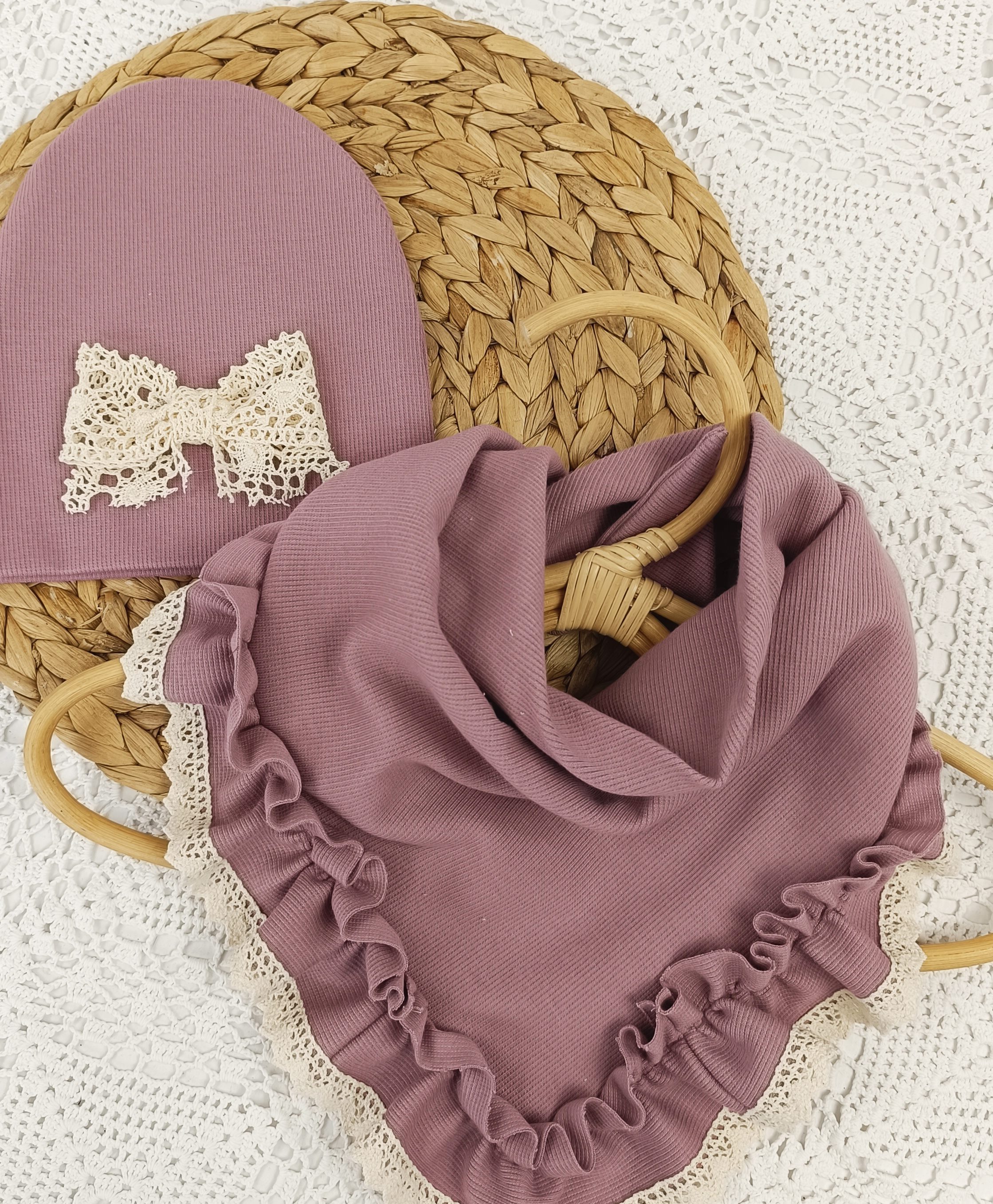Zestaw: Czapka z kokardką i chusta - ciemny brudny róż