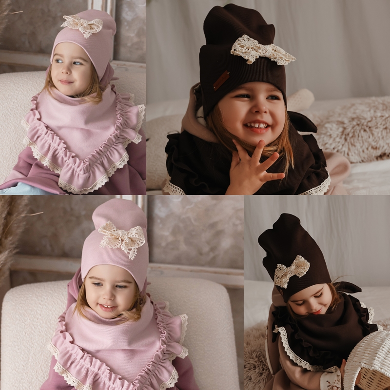 Zestaw: Czapka z kokardką i chusta - różne kolory