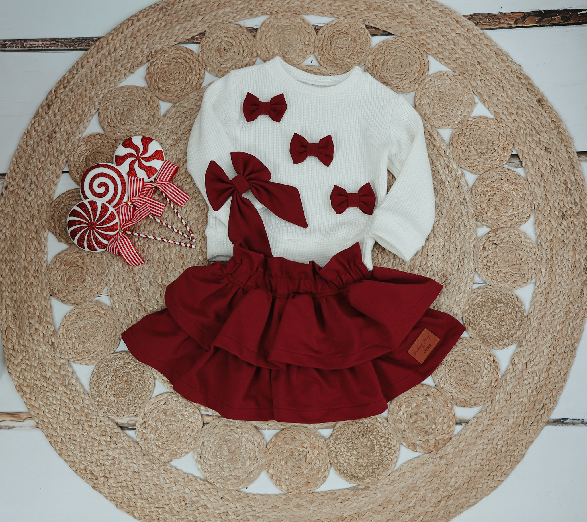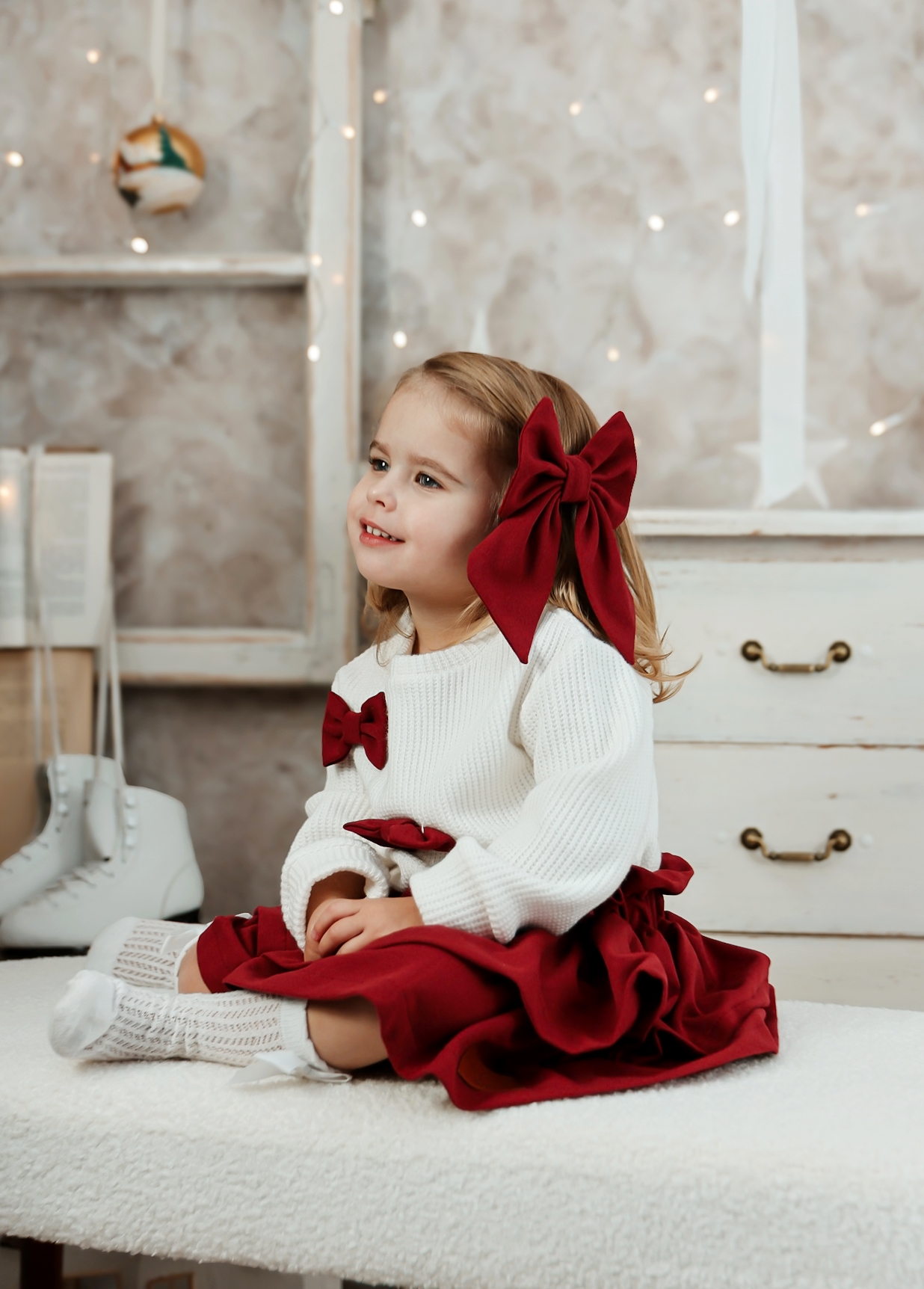 Zestaw świąteczny dla dziewczynki – sweterek + spódniczka (+ opcjonalna spinka)