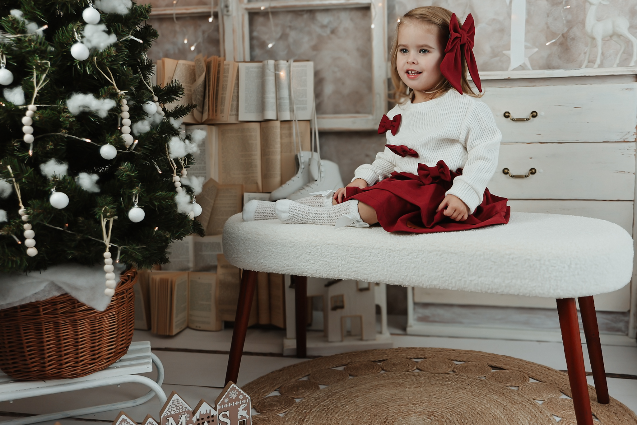 Wprowadź świąteczną magię do garderoby swojej córeczki! Ten uroczy zestaw w klasycznych bożonarodzeniowych kolorach to idealny wybór na rodzinne spotkania, sesje zdjęciowe i wyjątkowe chwile przy choince.