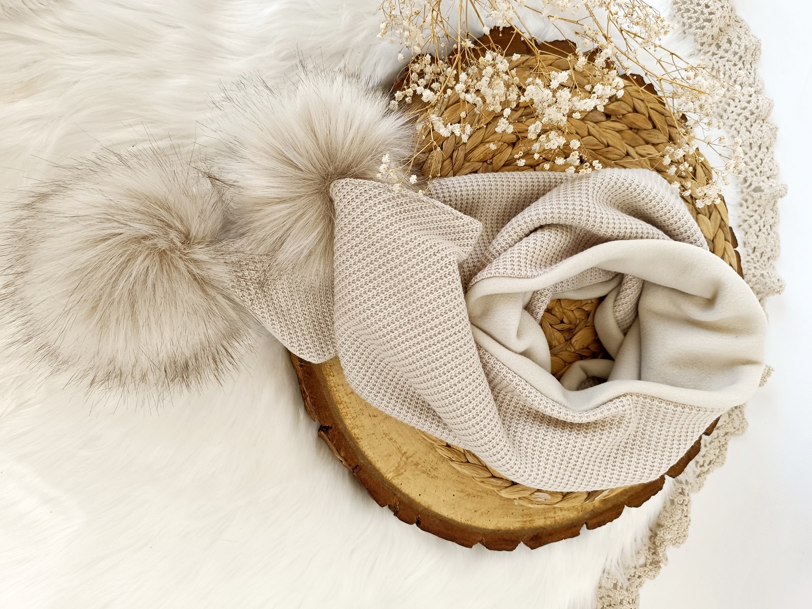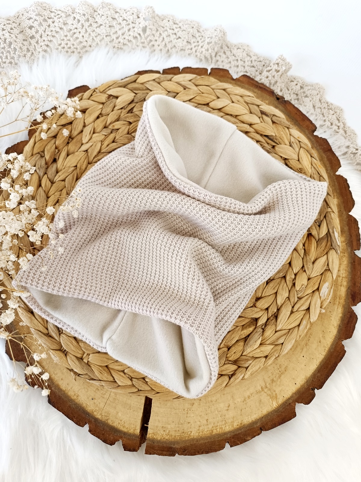 chustkę/komin wykonuję z dzianiny podszytej ciepłym polarkiem.