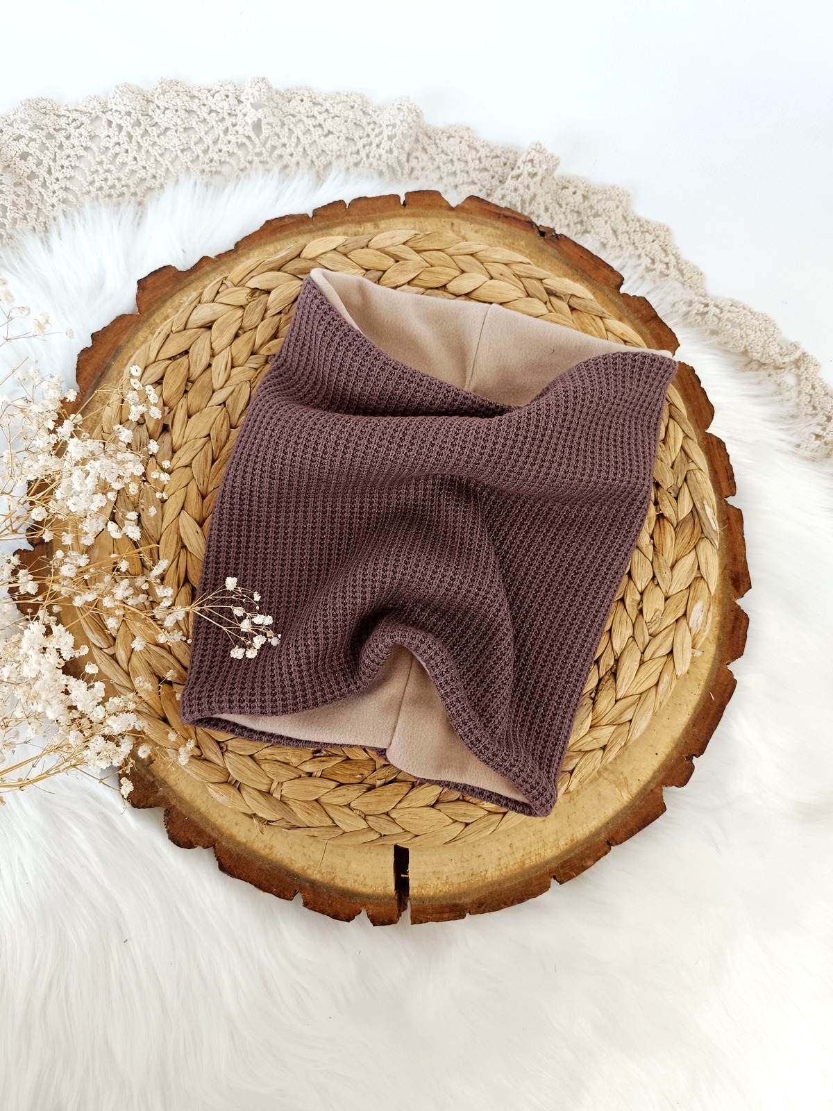 chustkę/komin wykonuję z dzianiny podszytej ciepłym polarkiem.